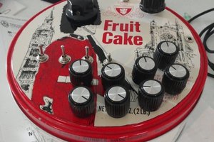 The Cardboard Radio RF board comes pre-assembled and has two potentiometers mounted on it, the volume control and the tuning control. I removed the volume control so that I could mount it on the front panel. I decided to leave the tuning control on this board for now and make it accessible from the back, because I don't want to make it too easy for my mother to accidentally disturb the tuning. I ended up remounting it the other way around, though, because it turned out to be more convenient to have the shaft pointing out of the other side. I may make some changes to the tuning system in the future.