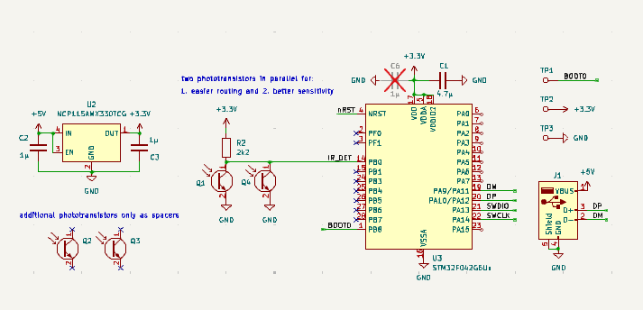 While researching PCB-based USB connectors, it occurred to me that there is quite a lot of empty space inside a USB-A port - around 12x8x2.5mm in fact! This is more than enough to accommodate a small microcontroller and associated components. And so the idea of Hidden HID was born - a USB device that fits entirely inside the port, with the components on the bottom side of the PCB, opposite the contacts.