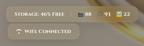 - Disk usage & Media counts (Video/Music/Photo)