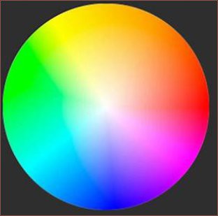 With the aid of Gemini, I was able to code some helper functions and learn more about Python. The main helper function was to blend a foreground+alpha with the background (which is that standby white I was talking about earlier). Another was to convert a hex code to a byte array of hue and saturation. You might be wondering "what happened to value/brightness or luminance?". Well, unlike a screen, a singular LED "pixel" doesn't really look like it produces "grey", just "a less-bright white". Hence, the "colours" available is those in this circle: