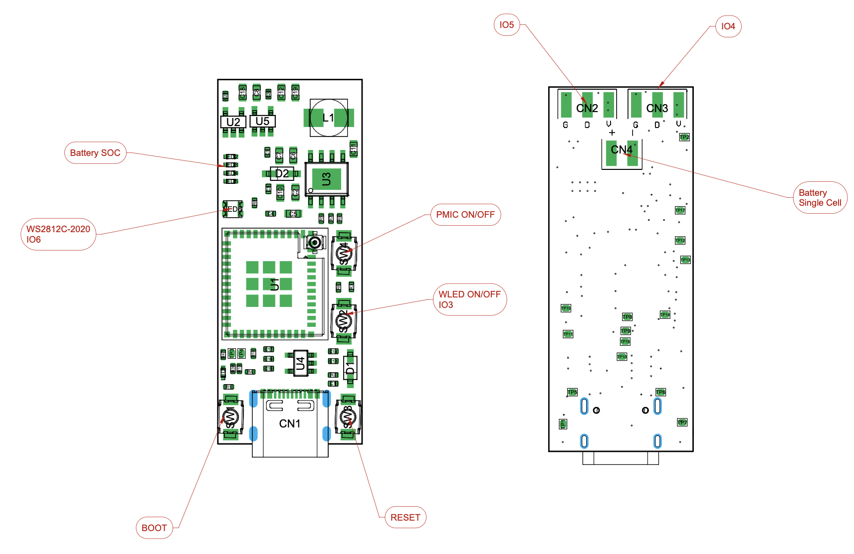 For the PMIC (Power Management IC), I got creative and chose the IP5305T, originally designed for inexpensive 5V power banks. This single SOIC-8 package handles lithium battery charging, 5V boosting, and includes a power path for USB input. It even integrates a push-button controller, making it an ideal all-in-one solution. To power the ESP32-C3, I used an LDO to provide a stable 3V3 supply.