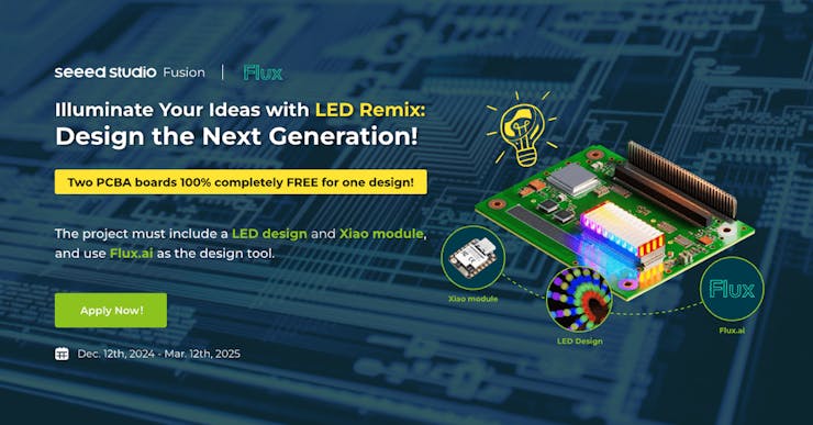 flux.ai and Seeed Studio have teamed up to make hardware prototyping a breeze for developers.With Flux's AI-powered design tools, you can quickly iterate on your ideas. With Seeed Fusion's rapid prototyping services, you can bring your designs to life in no time. Want to build a bravo LED project based on #Xiao? We can help you every step of the way.