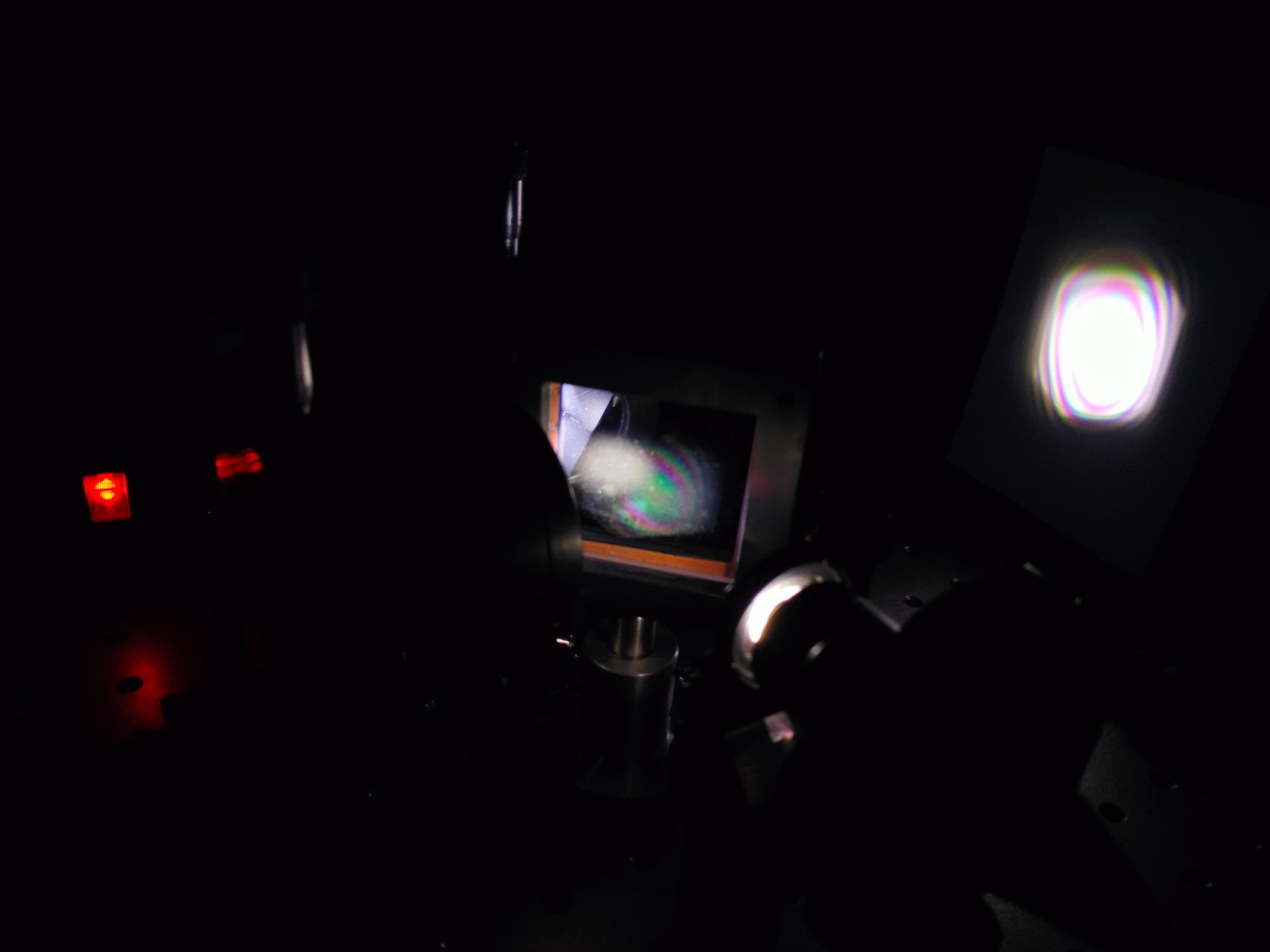 The interference fringes from the red diode laser will be observed on a ground glass screen. We'll start with flat mirrors to achieve our first fringes and later transition to retroreflectors. We are still researching the accuracy requirements for retroreflectors and their limitations in this application.