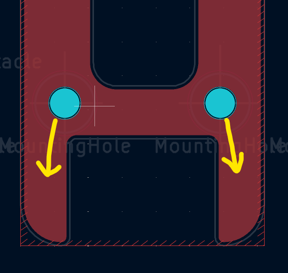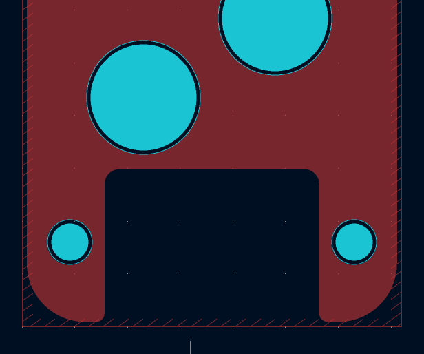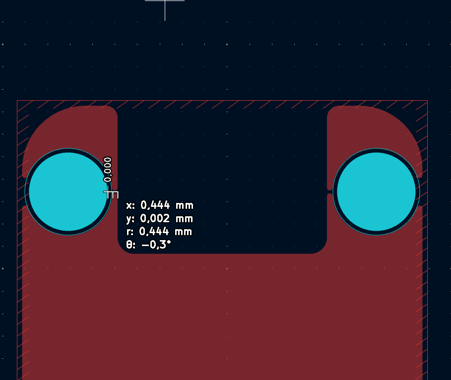 This however had an unintended side effect that it required one of the PCBs to have a width of less than 0.5 mm in some places, which is less than 500 micrometers!!! as shown in the figure below. This is because two PCBs were required to have holes much larger in diameter than what would be required for a M1.6 screw, so that entire SMT spacer could fit inside them, leaving absolutely no protrusion on the outside or gap between the PCBs (another improvement in the beta design).We had no clue if this would work or the PCB would just fall apart either during the manufacturing process or while handling, in the previous design we tried to constrain the PCB width to 2.5 mm on a 1.6 mm thick PCB, however now we were trying to push it to less than 0.5 mm on a PCB that was half (0.8 mm) as thick. However, after consulting with PCBWay we decided to go further with this idea. I guess we'll only know for sure when we have the manufactured PCBs in our hands.