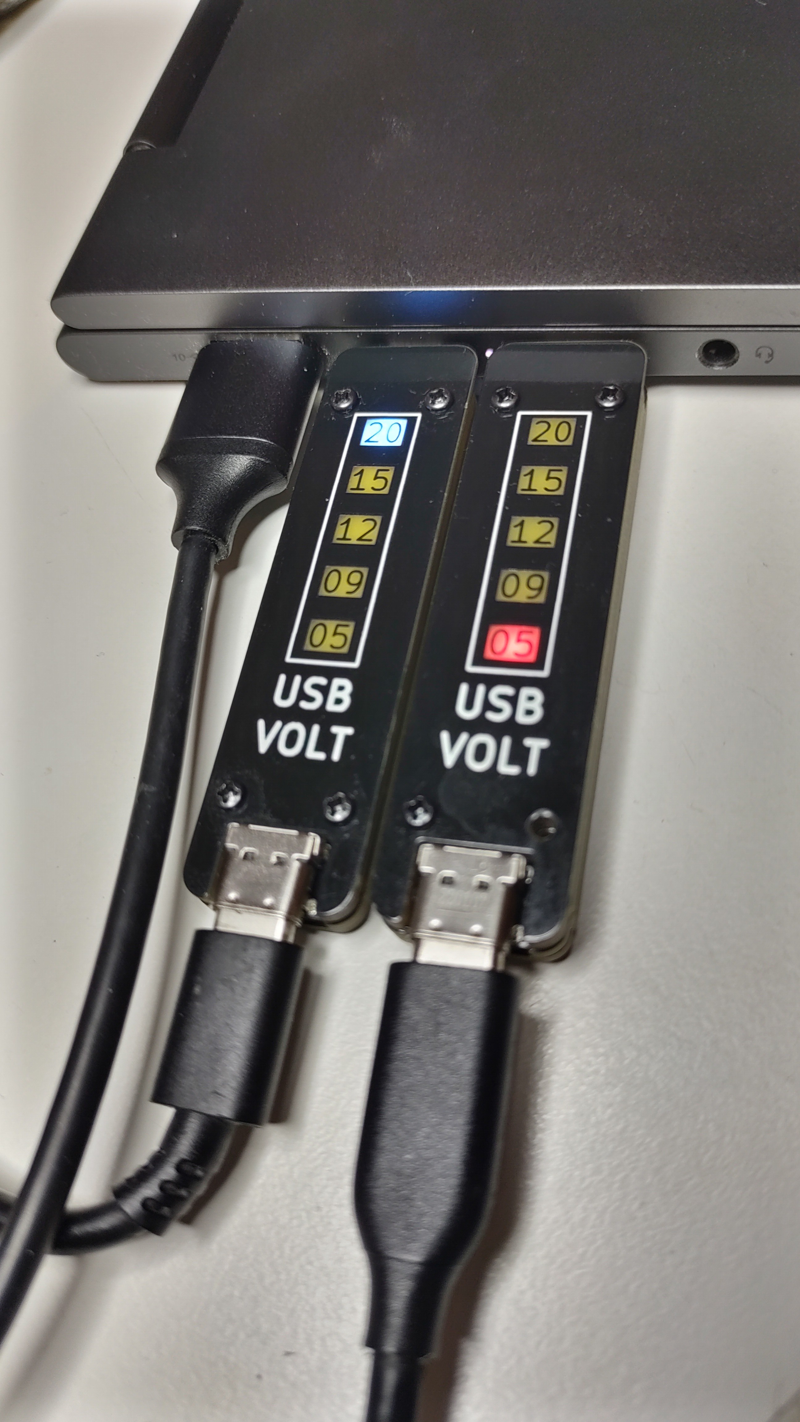 15 V (green) slowly blinking and 20 V (lime) steady