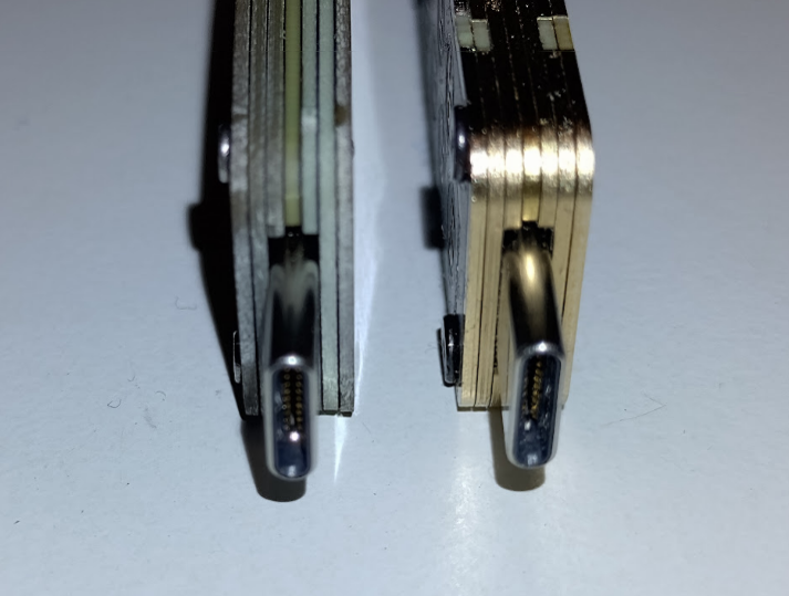 The Beta version (left), the Gamma Version (right): Gap on the top and bottom of the USB-C was reduced to almost zero