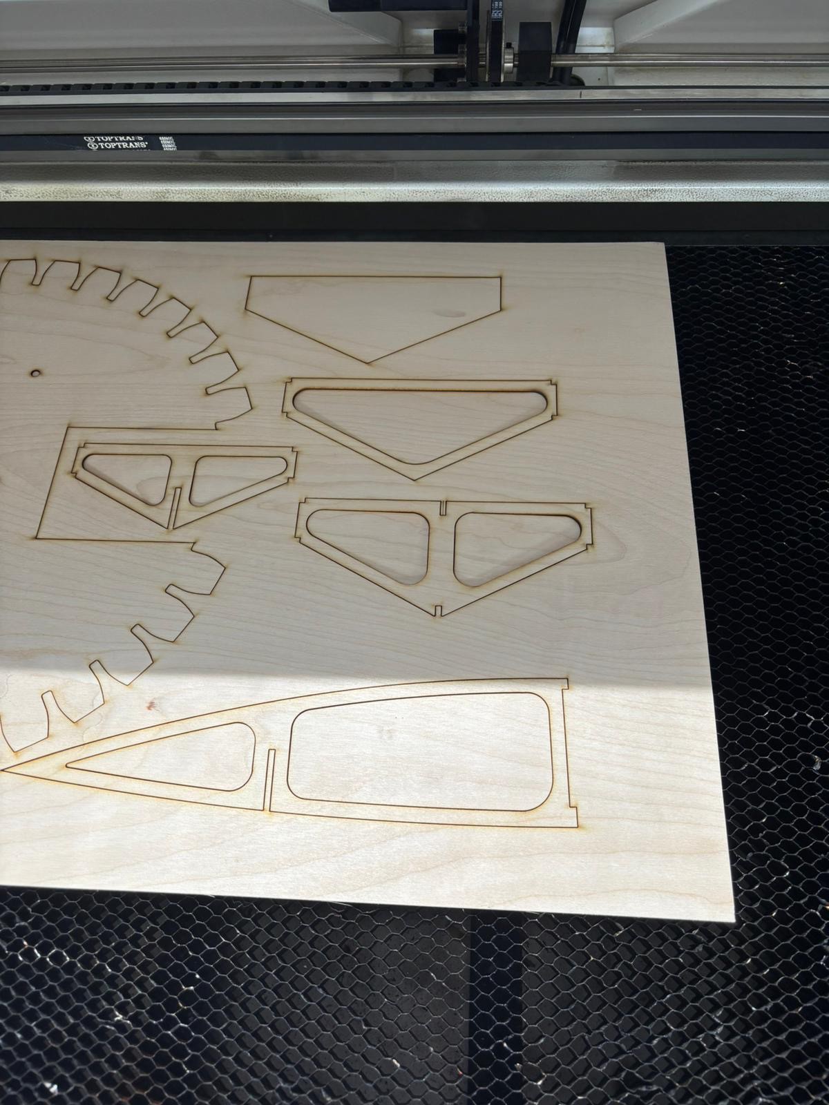 During this week our main goal was to create a prototype of the hull of the boat. We did this by using a laser cutter to be able to cut plywood to create the bulkhead and other supports for the hull. we created a rough prototype of the hull design with cardboard to make sure that our dimensions are accurate and to make sure that all of our components will fit within the boat without sacrificing any usability or balance.