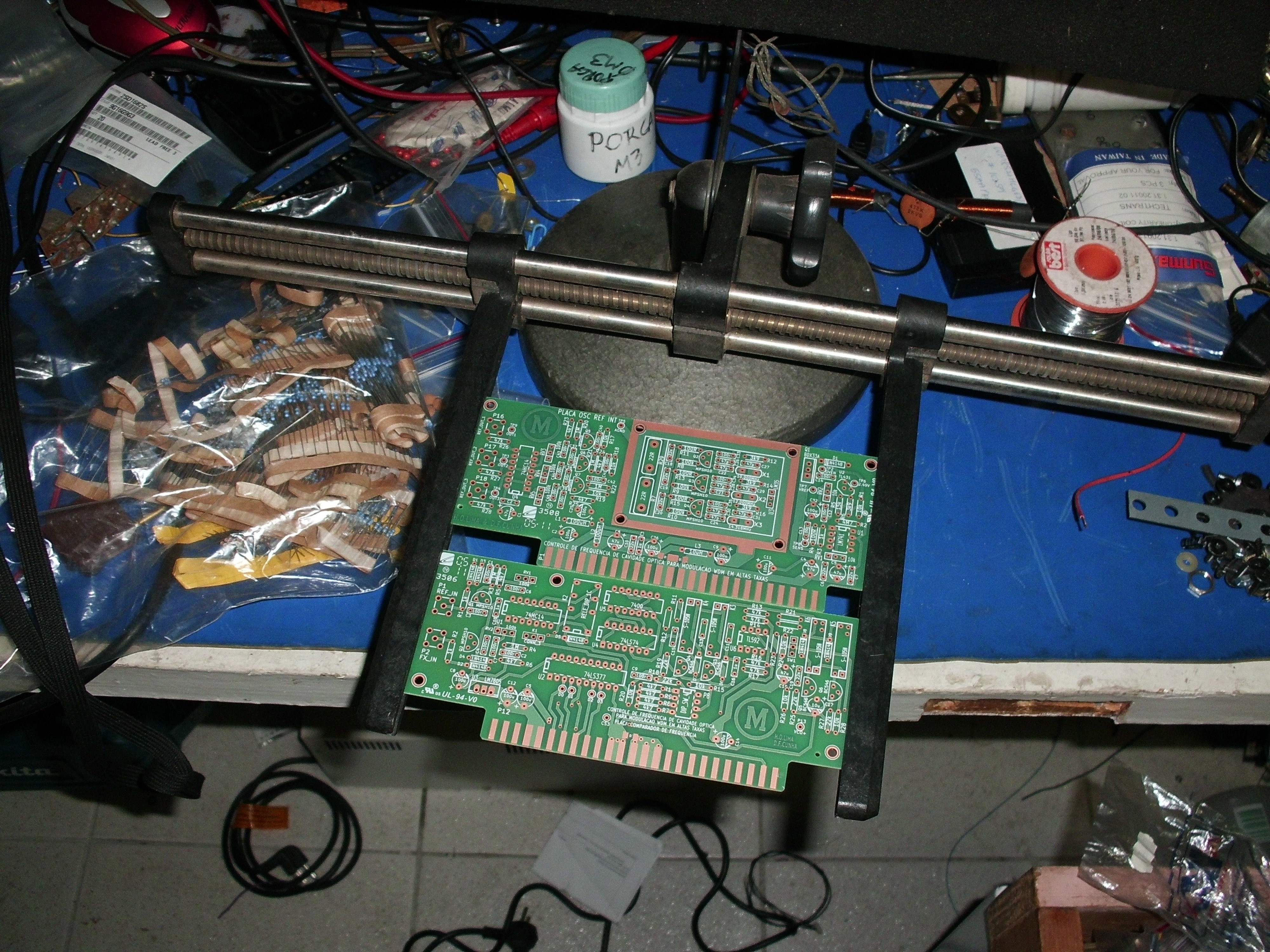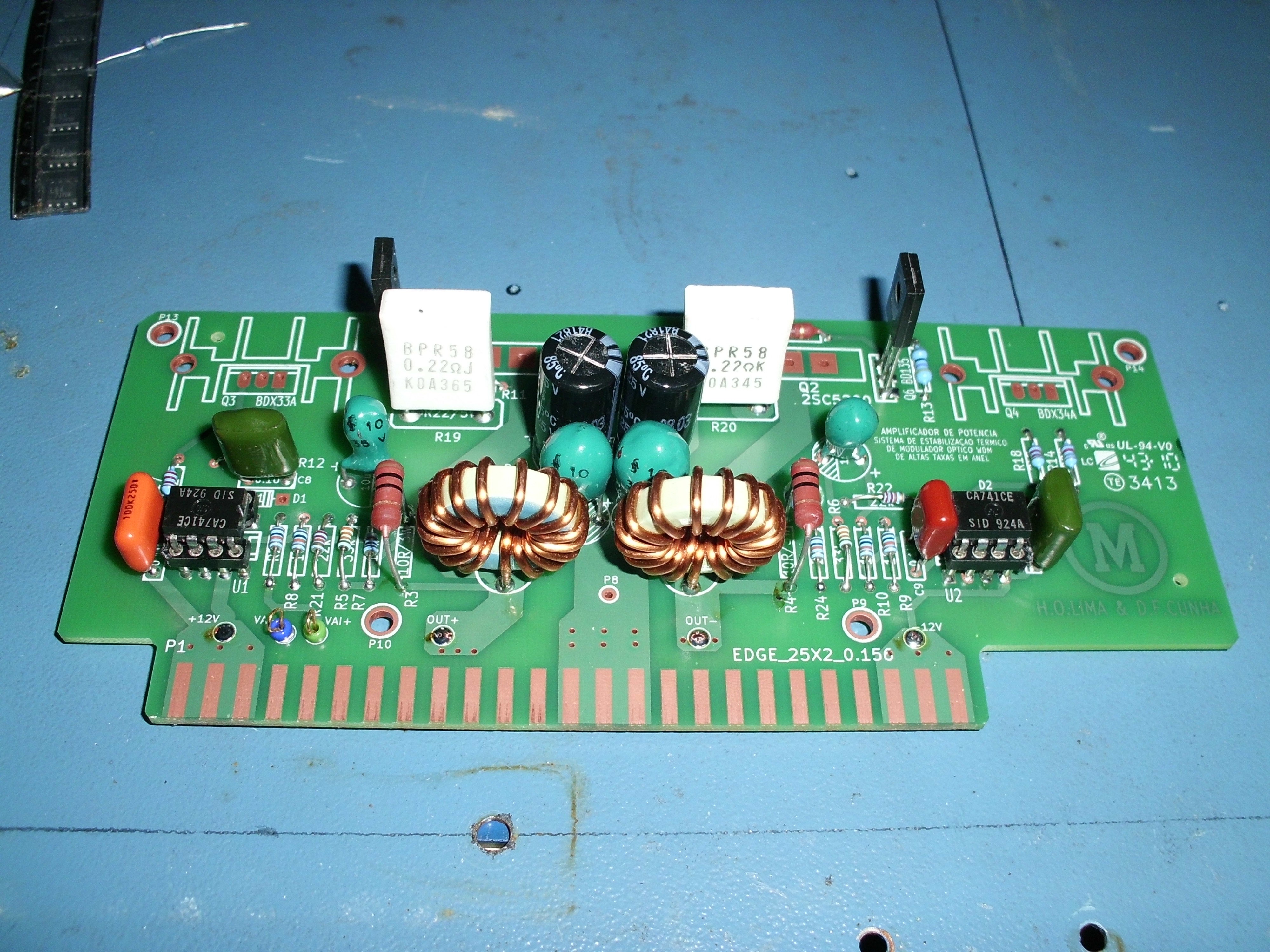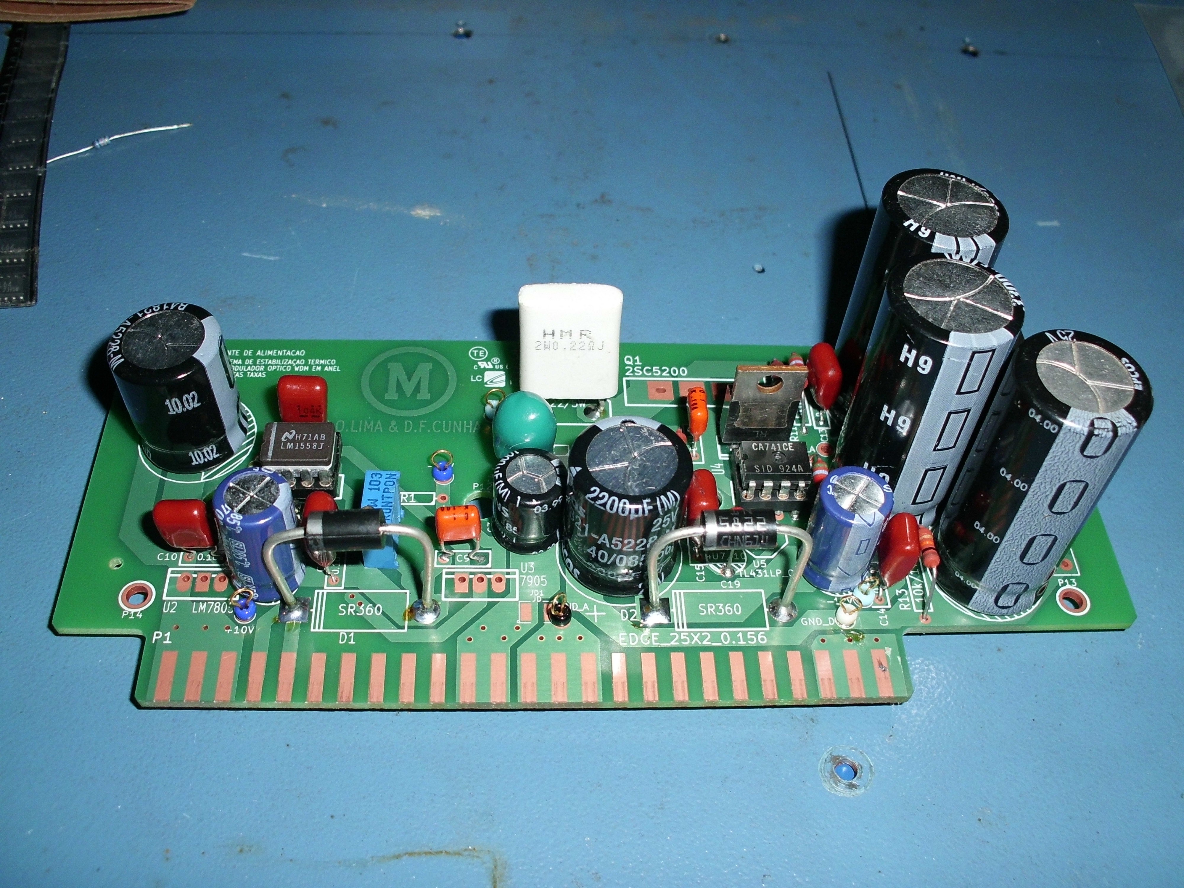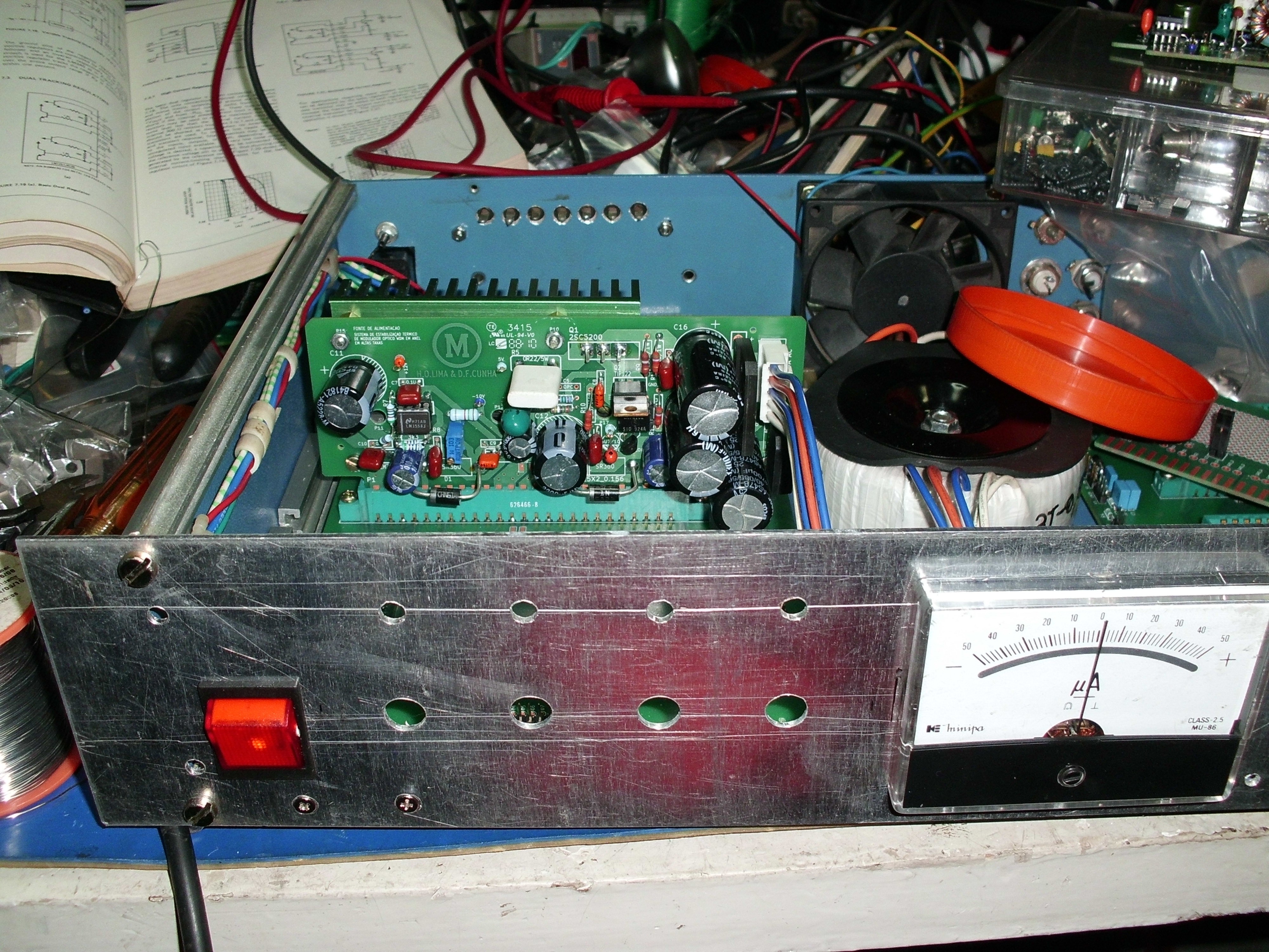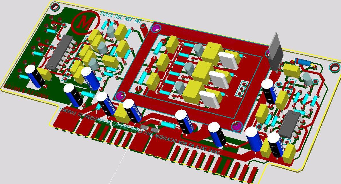This project aims to achieve a direct method to stabilize the bandwidth performance of EDFL WDM (Wevelenght Division Multiplex) ring, using a Closed Loop Control System. The feedback path to close this loop is taken from the output of the system and applied in a device that will compensate for thermal and other non linear effects that occur on the system, improving the overall bandwidth performance of the modulation system. The results achieved on the theoretical analysis will them be applied on the physical actuator, controller and feedback path to ensure the real performance of of the modulation system. The results achieved on the theoretical analysis will them be applied on the physical actuator, controller and feedback path to ensure the real performance of the device, acting on an oscillator designed to simulate the frequency to temperature dependency of the real optical fiber system. Everything we have from this project will be provided here, free to use. Kicad V6 was used.