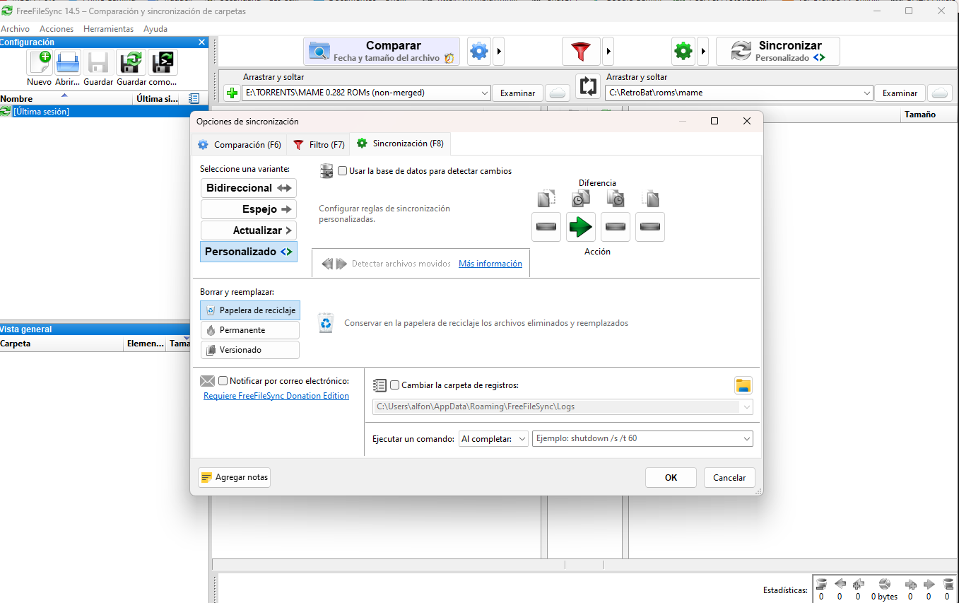 Para sustituir las roms que tenía por las del romset he usado freefilesync.