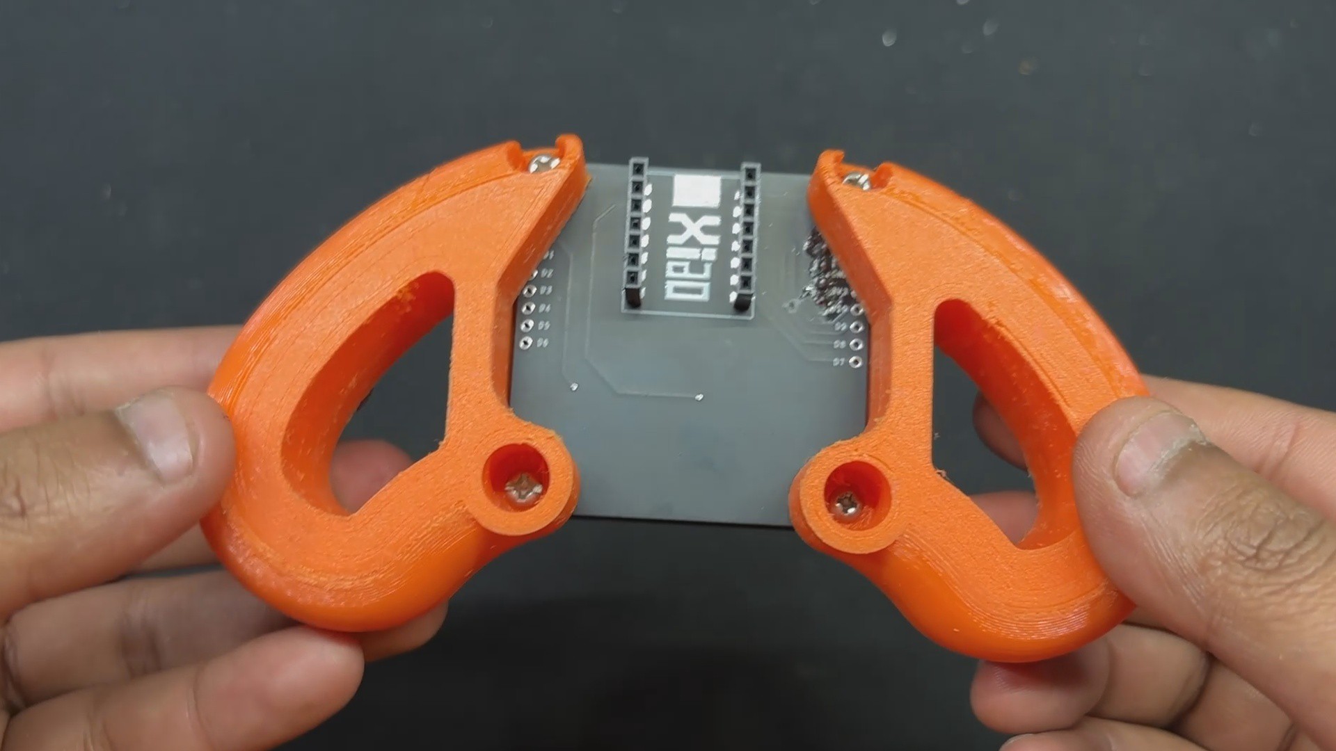 To hold this console ergonomically, we took inspiration from the Sega Genesis Controller and designed two grip parts secured using M2.5 PCB standoffs used to connect the two PCB layers.