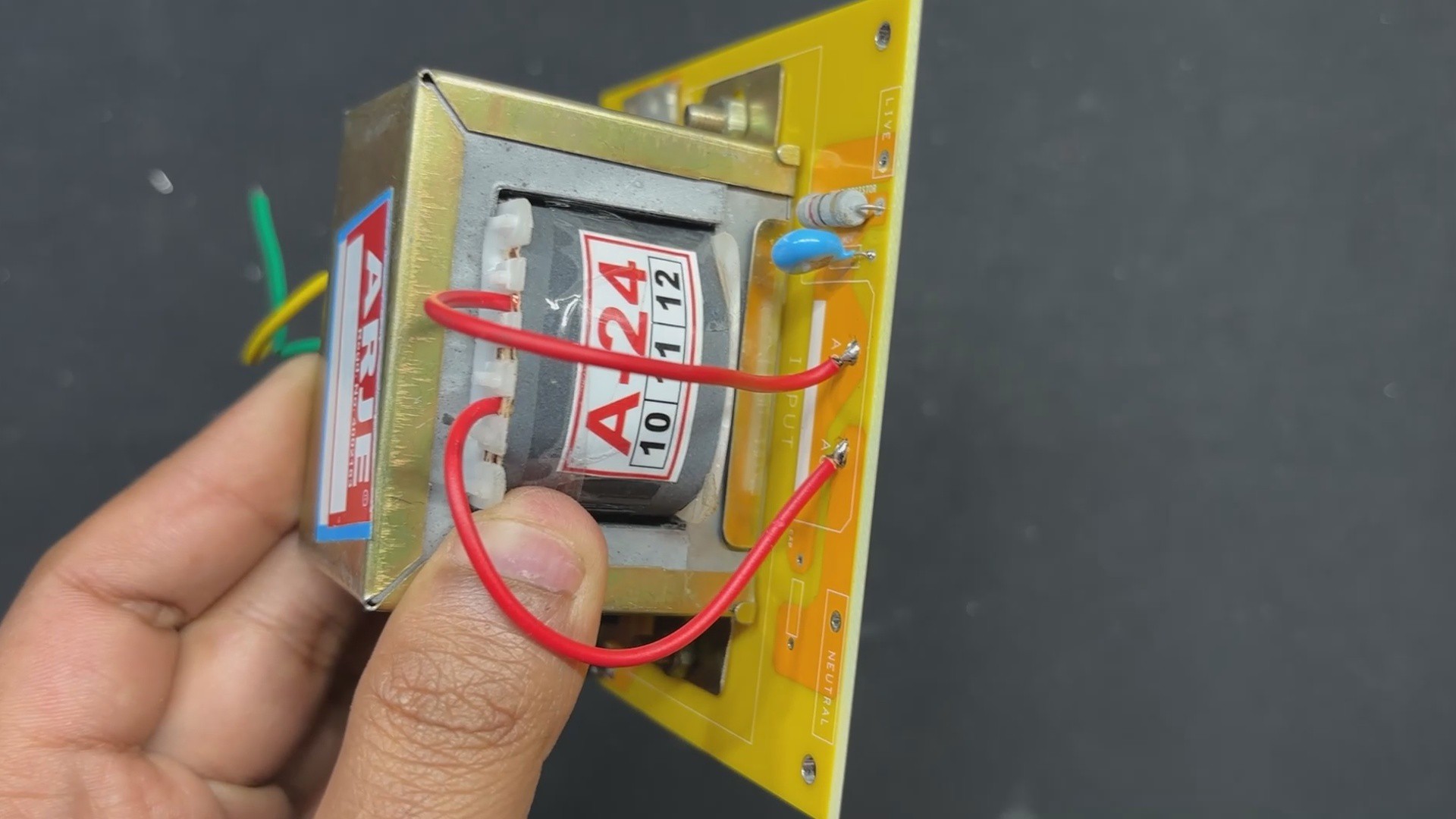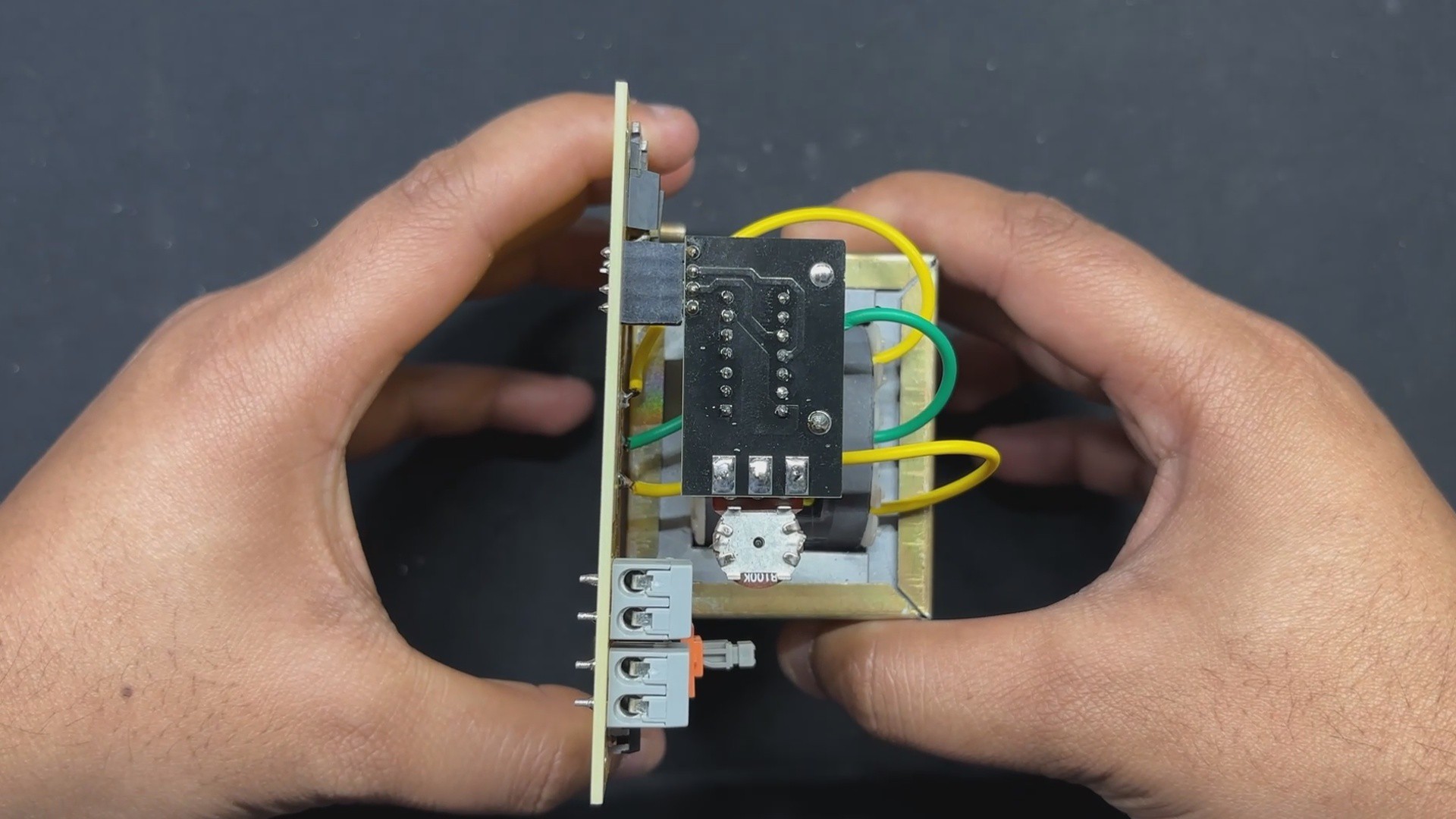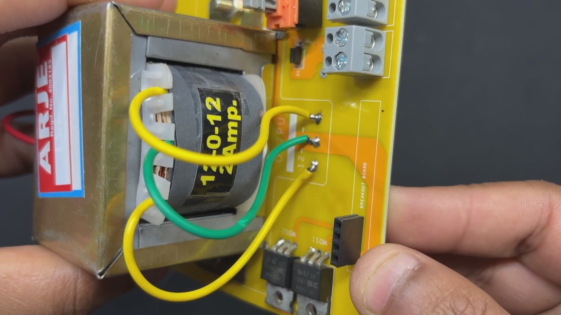 This board also has two mounting holes, so the transformer can be securely attached with nuts and bolts to the circuit.