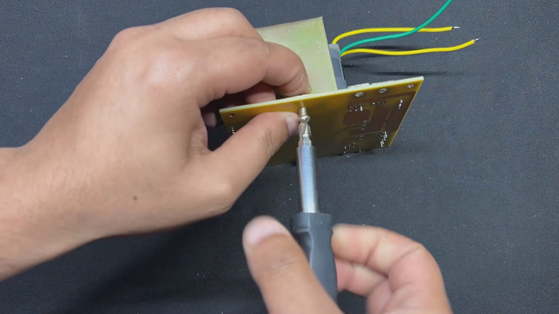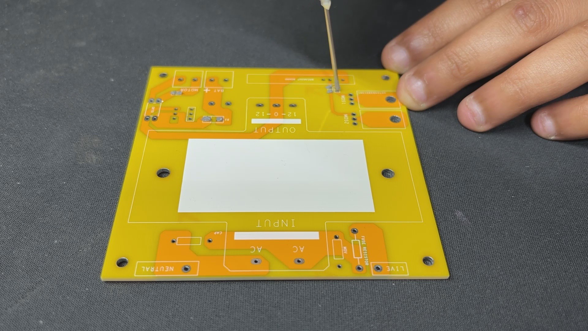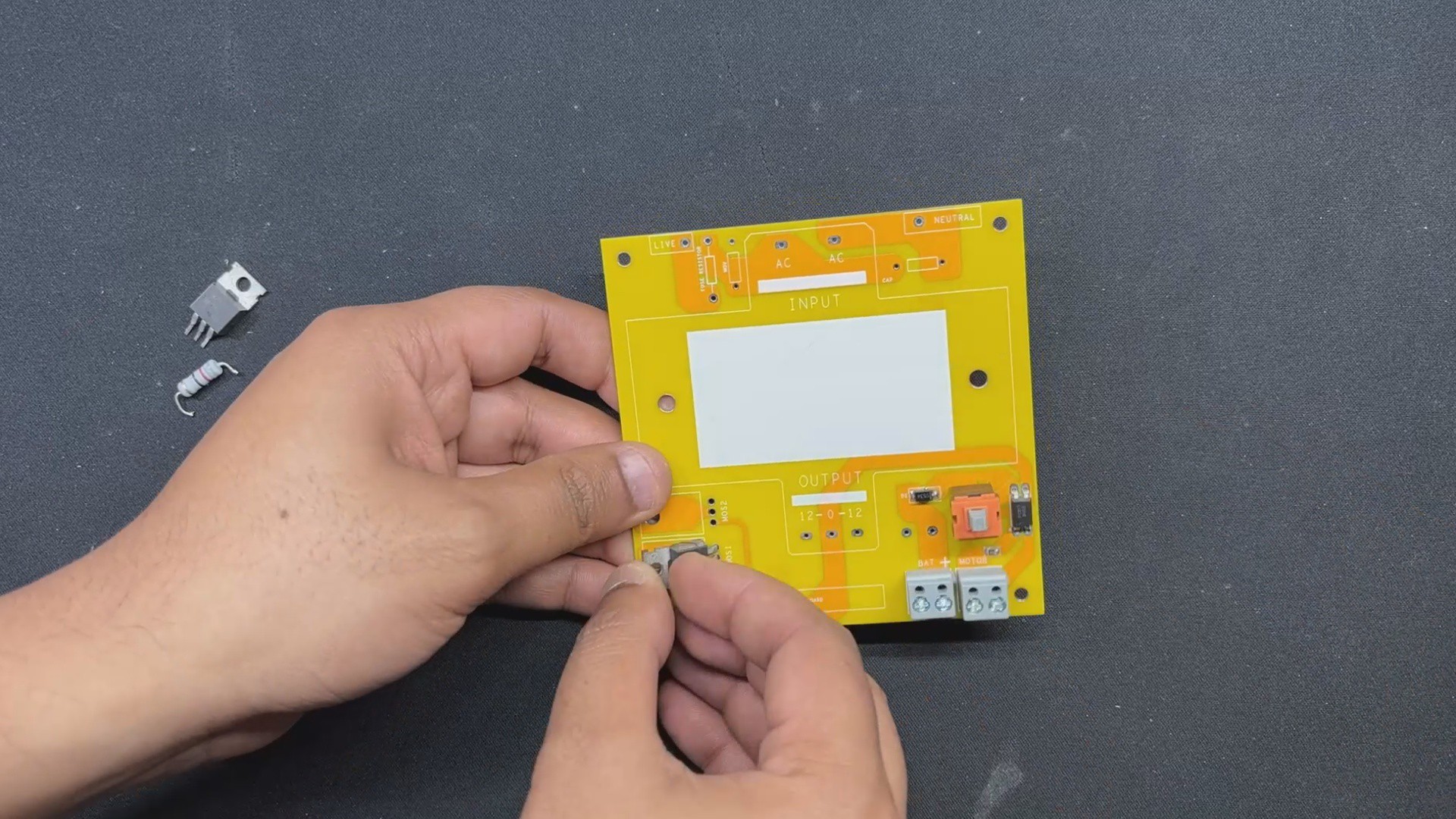 This board also has two mounting holes, so the transformer can be securely attached with nuts and bolts to the circuit.