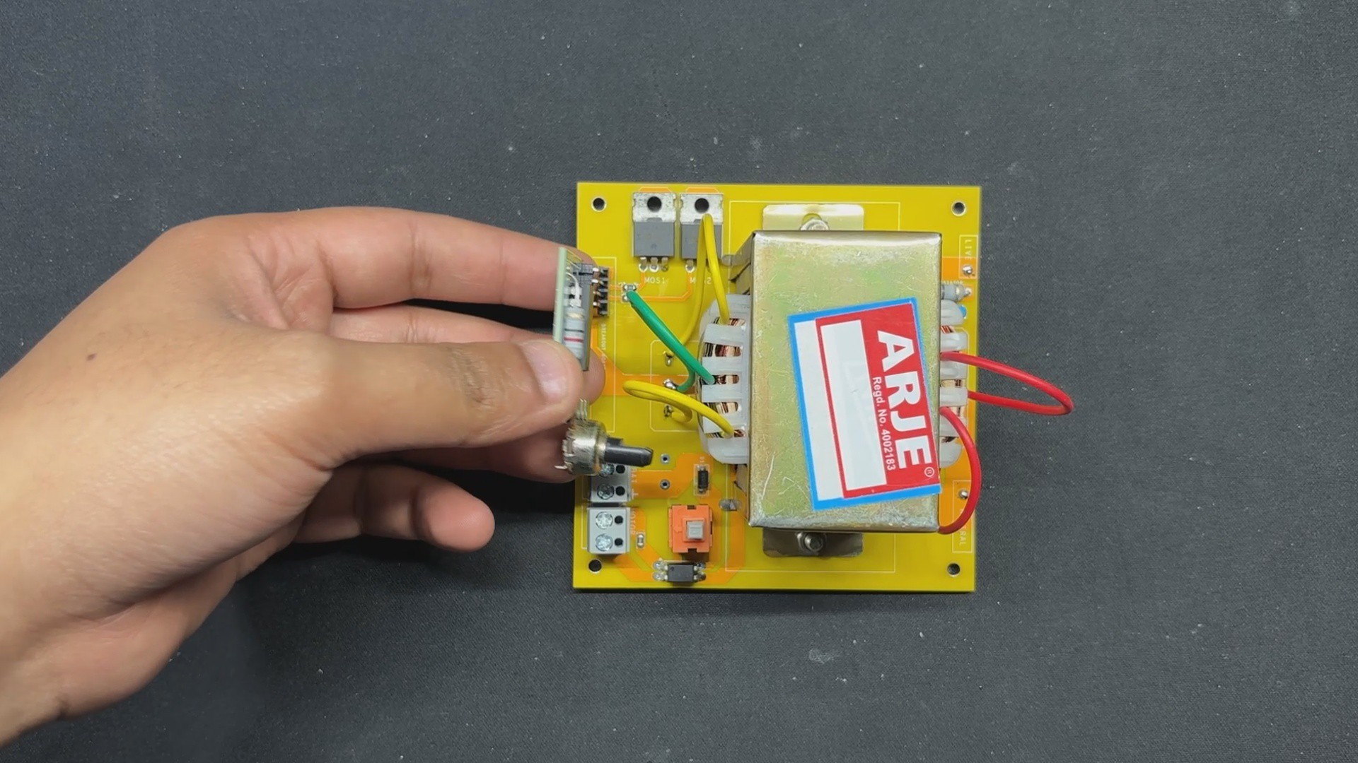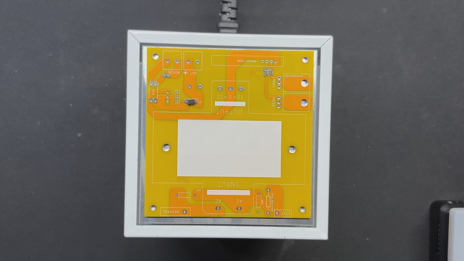 These pulses are then sent into the circuit's second section, the MOSFET BOARD, which includes MOSFETs, a transformer, capacitors, and other essential components.