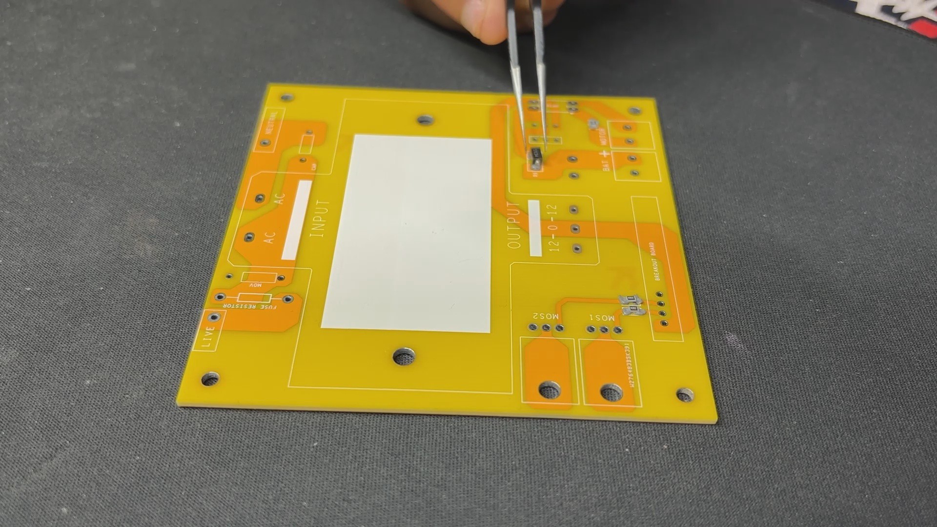 The CD4047 Driver Board was ordered with black solder mask and white silkscreen, and the MOSFET Board was ordered with yellow solder mask and white silkscreen.