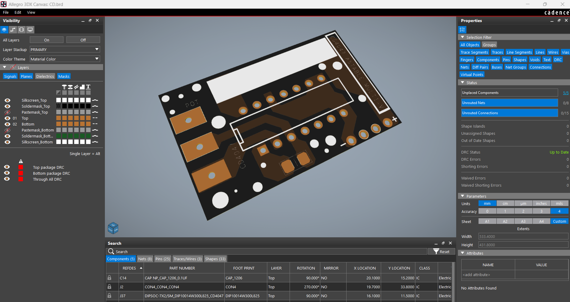 We begin this project by designing the PCB, which consists of two primary sections for modularity.