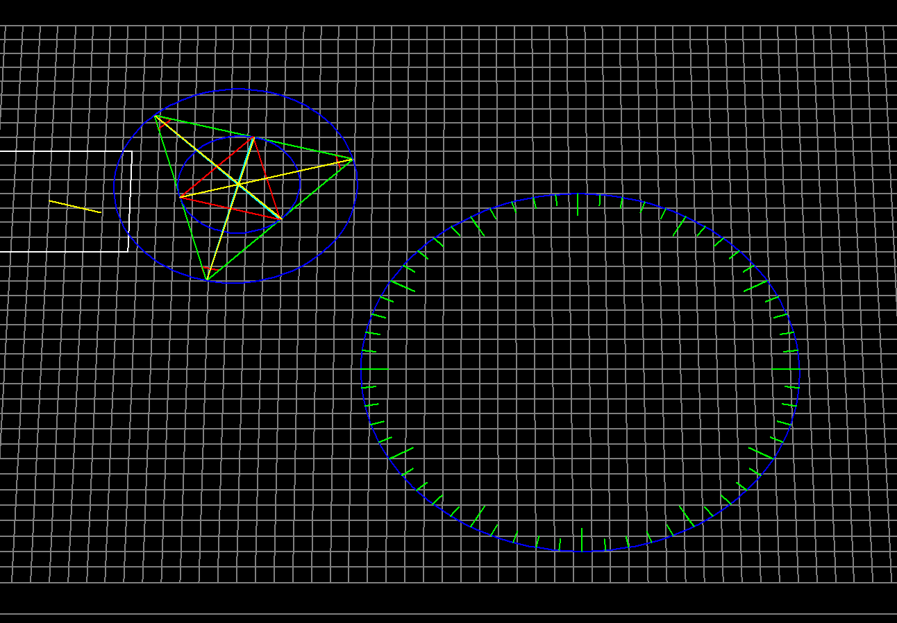Generating fully animated proofs of all 465 of Euclid's proofs and demonstrations is a bit beyond the scope of this project, but certainly within the realm of possibilities, just in case you need some really interesting tools for some yet ever so even weirder proof of something attributed to that Pythagoras. Otherwise, maybe this is a really good time for me to post the C++ source and header files for the Euclid stuff, which proves that yes, it really is possible to use branchless, or nearly branchless programming, with or without loops. and so on, to do some really interesting stuff.  Just like Ptolemy or Euclid.  Even if I haven't quite eliminated ALL trig calls quite yet.  But it can be done.  Maybe some other time.  Real soon now.