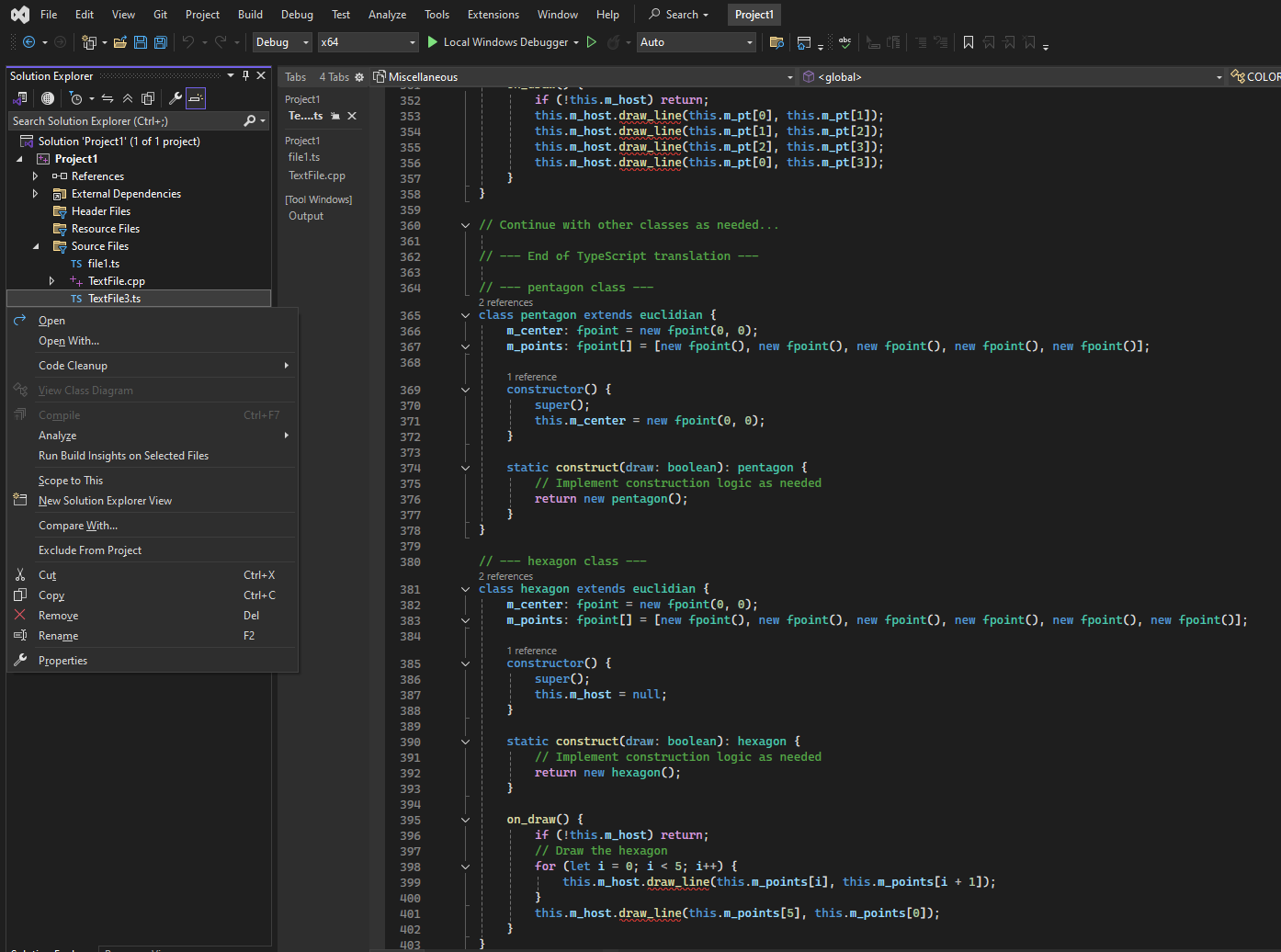 This could get messy, since some sets of vertices might get constructed more than once, and maybe some comparisons and sorting operations would need to be performed, even though that would probably involve branches, and it would also really mess with things as far as the meanings of words like "proof" and "rigor" are concerned, especially insofar as trying to prove the equivalence of the results of an analytic construction vs. a real world compass and straight edge construction are concerned.