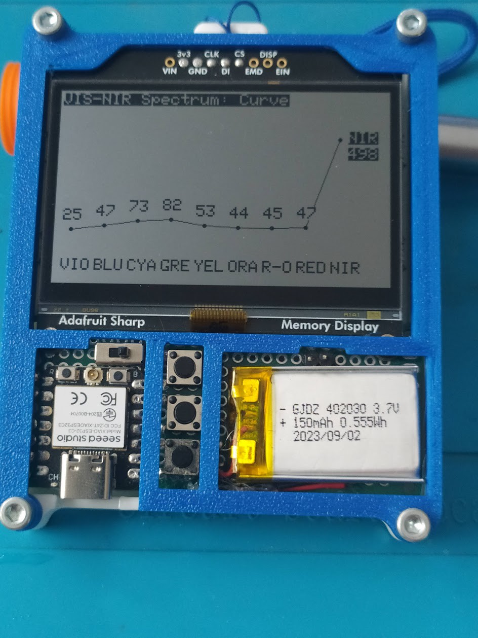 - AS7341 sensor for light measurement in 7 visible and NIR (near IR) bands.