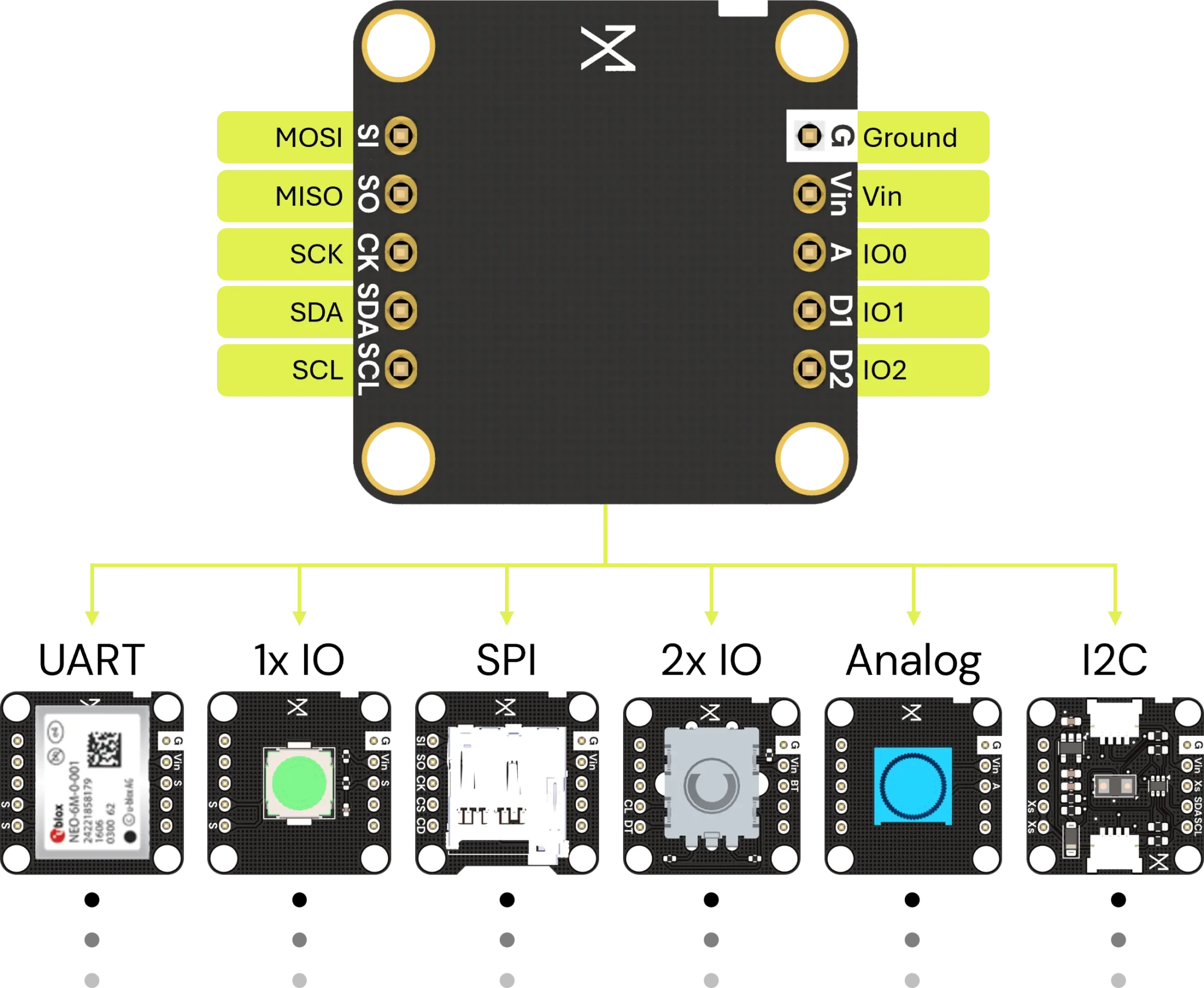 Supports 50+ modules including sensors, LEDs, switches, I2C displays, and more.