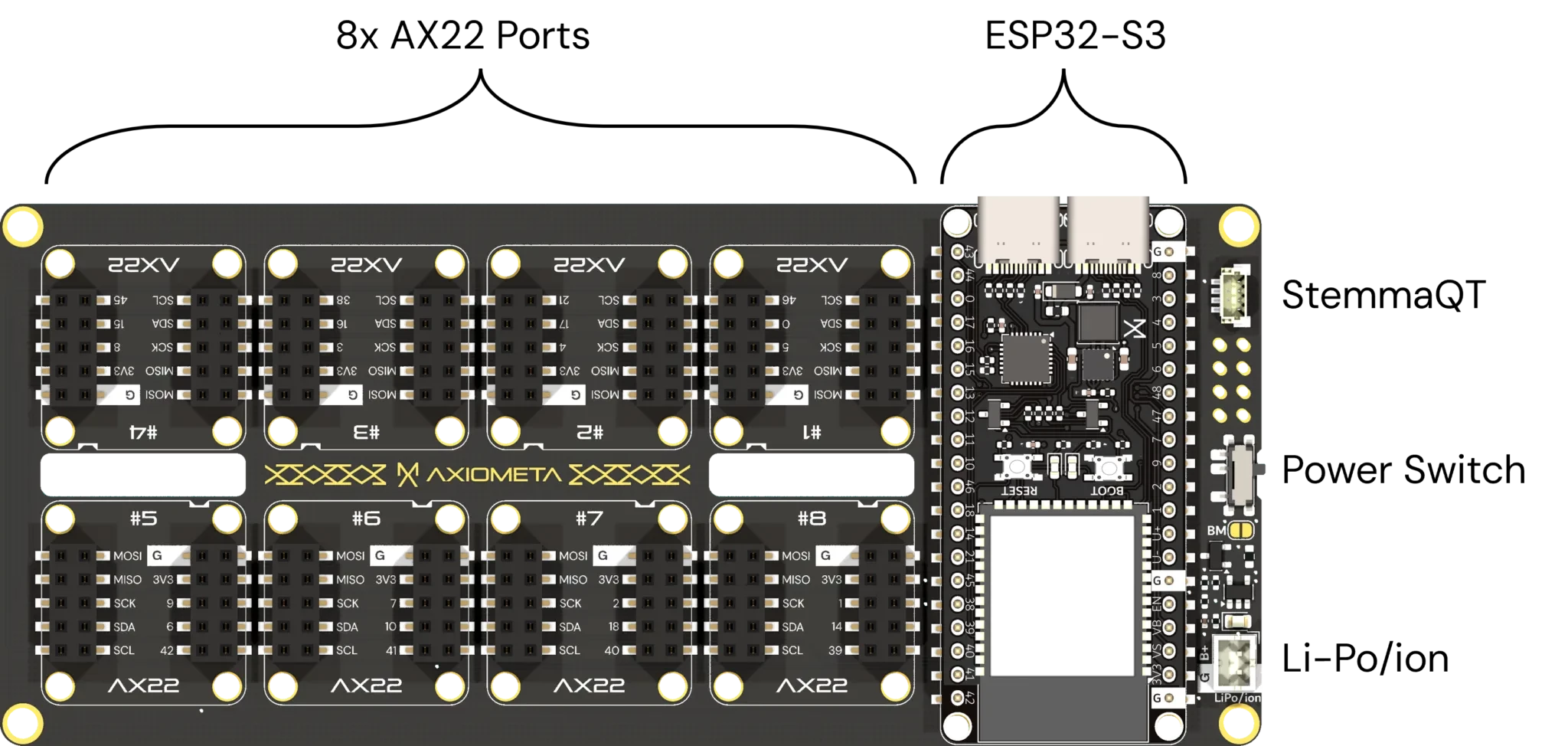 This pillar system is based on Seeed Studio’s ESP32-S3 development board and features the custom AX22 port I designed during the creation of GENESIS – a plug-and-play electronics lab for makers.
