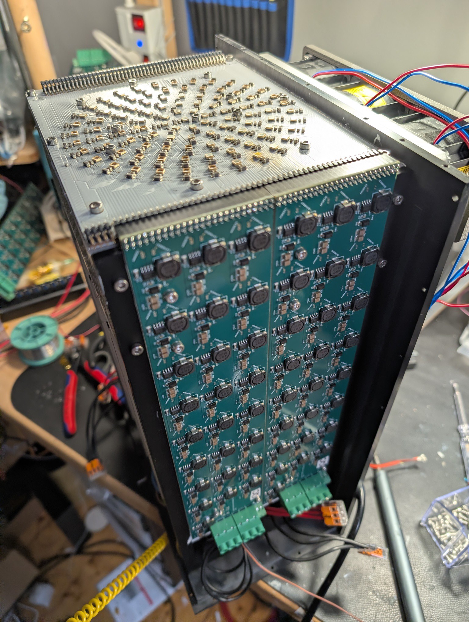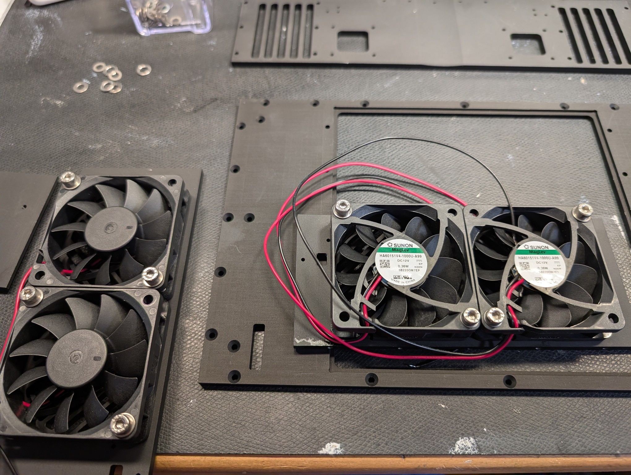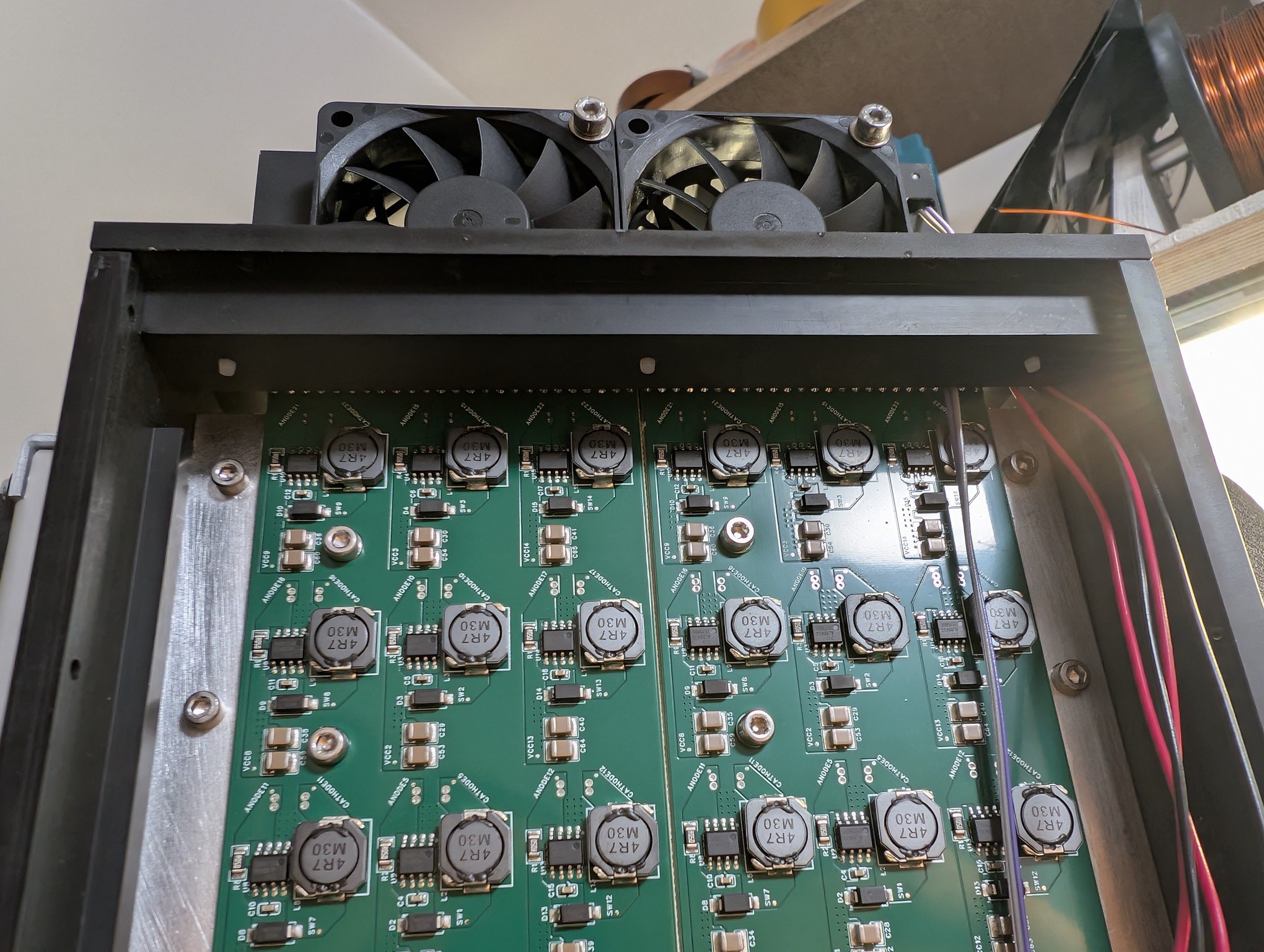 The second mistake was not having checked the datasheet of the heat sink fans. Turns out they draw 4A@12V, which immediately annihilated the MOSFET I had planned for them.