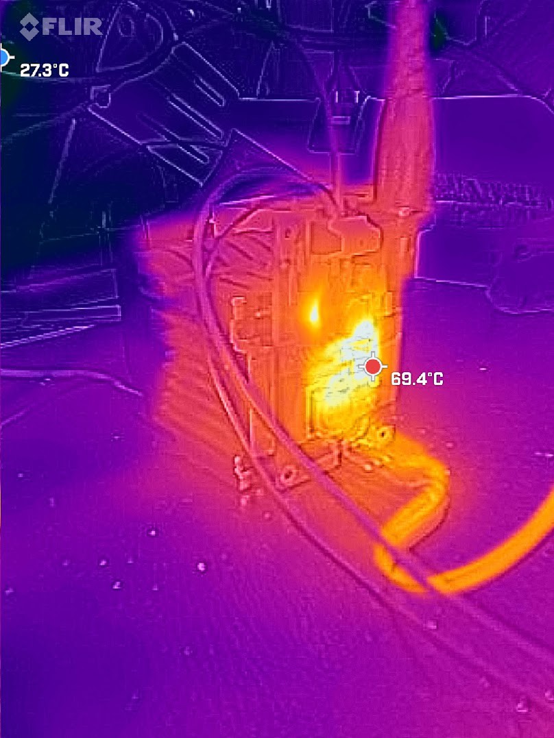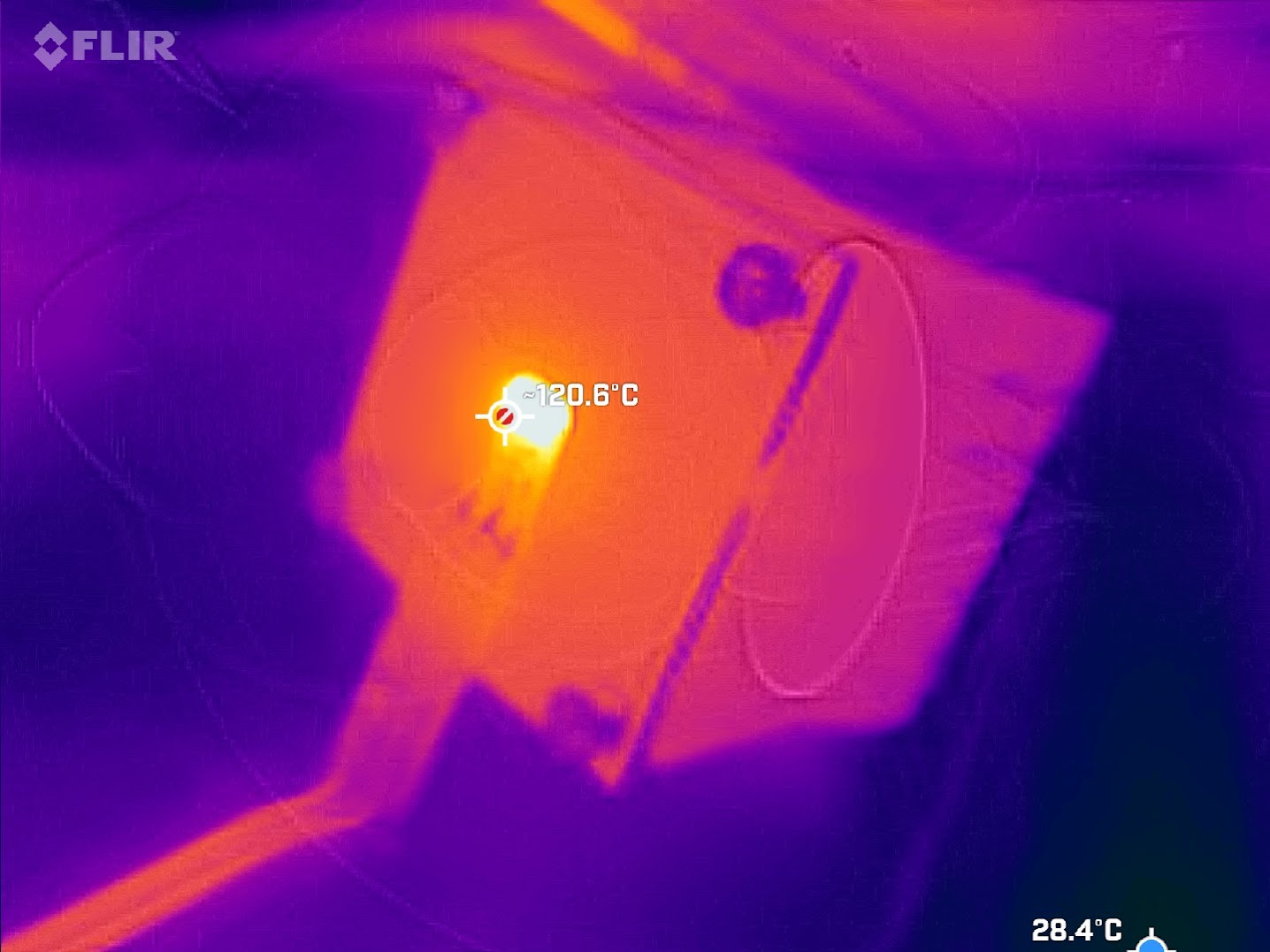 Next I tested for endurance. I cooled the LED using an aluminum heat sink with fan and inspected with thermal camera.