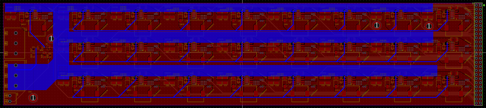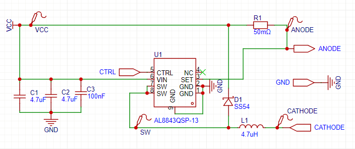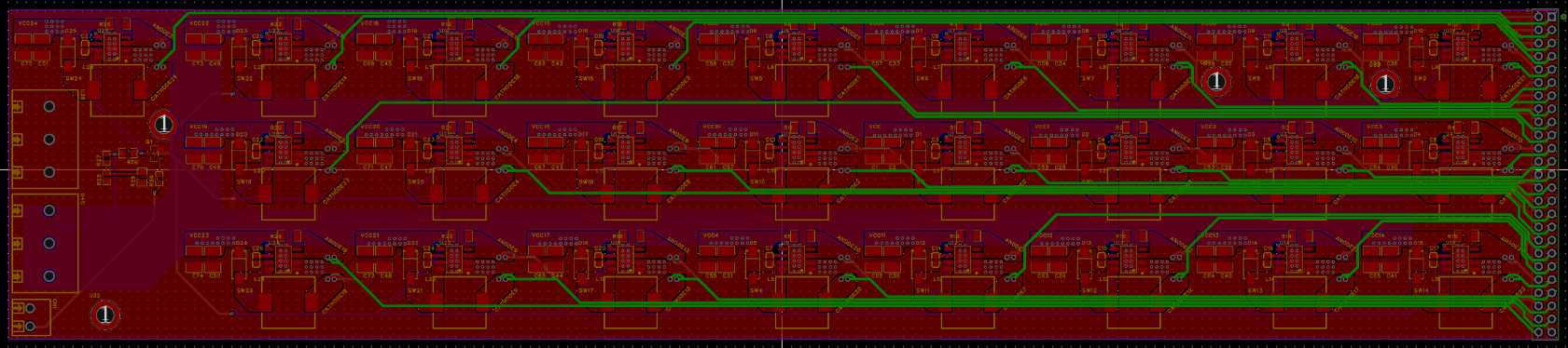 For the 25x driver PCB I decided to control all drivers simultaneously using the CTRL pin of the AL8843. By default all drivers should be off, even if no MCU is actively controlling the board.