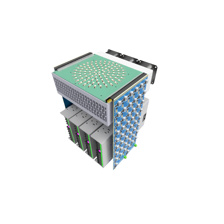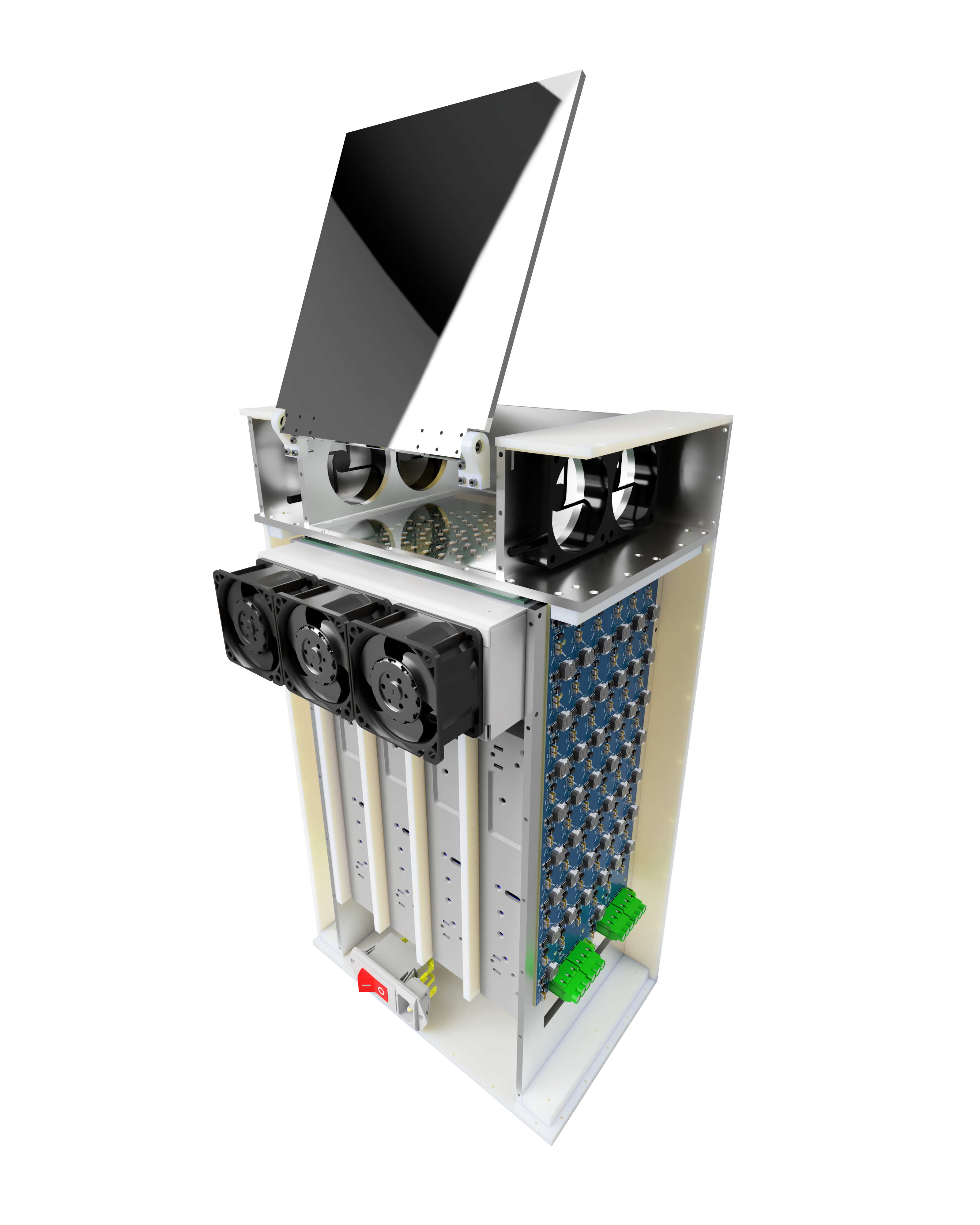With the main PCBs ready it was time to finalize the mechanical design. The following pictures show renderings of the front and the back of the lamp: