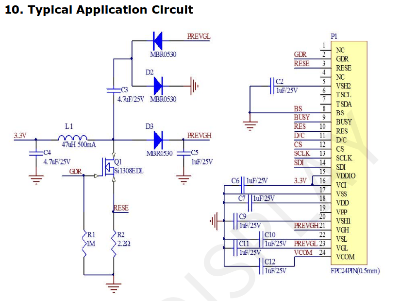 Finally, the display is connected to the board using a flat-cable connector. The circuit used is provided by the vendor.