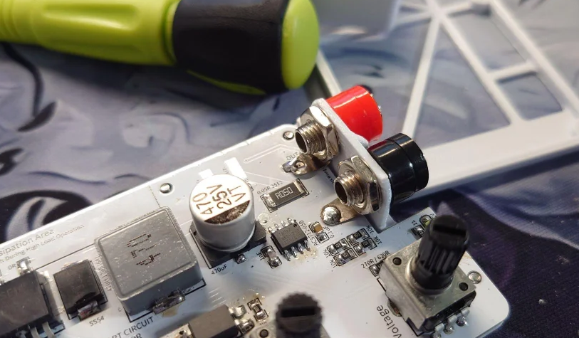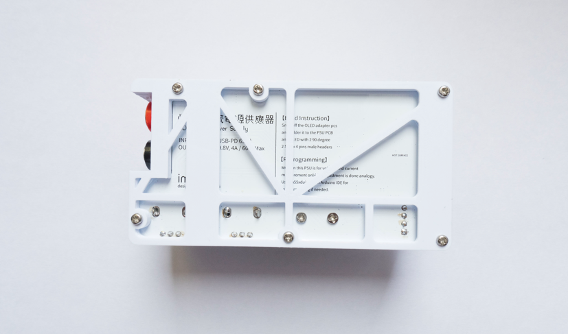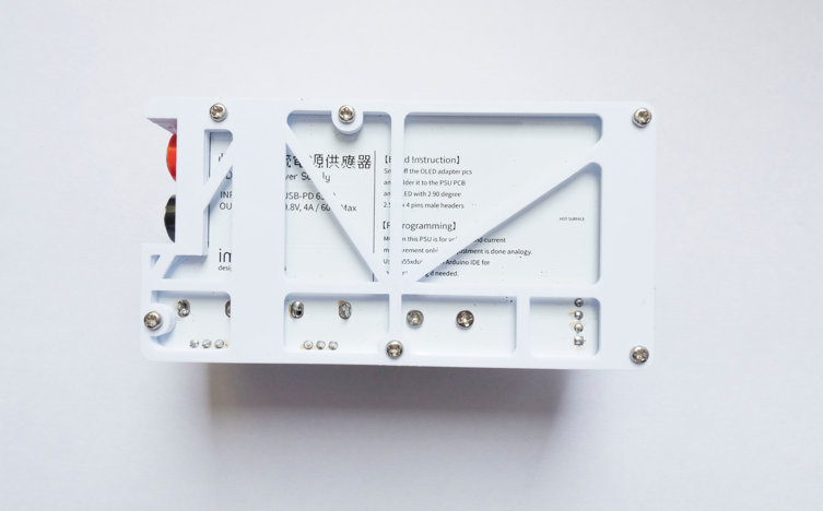 Afterward, you should get an assembled unit of the lower half of the power supply as shown in the above photo. Now, insert the OLED module into the 4 pin I2C connector and start flashing the firmware.