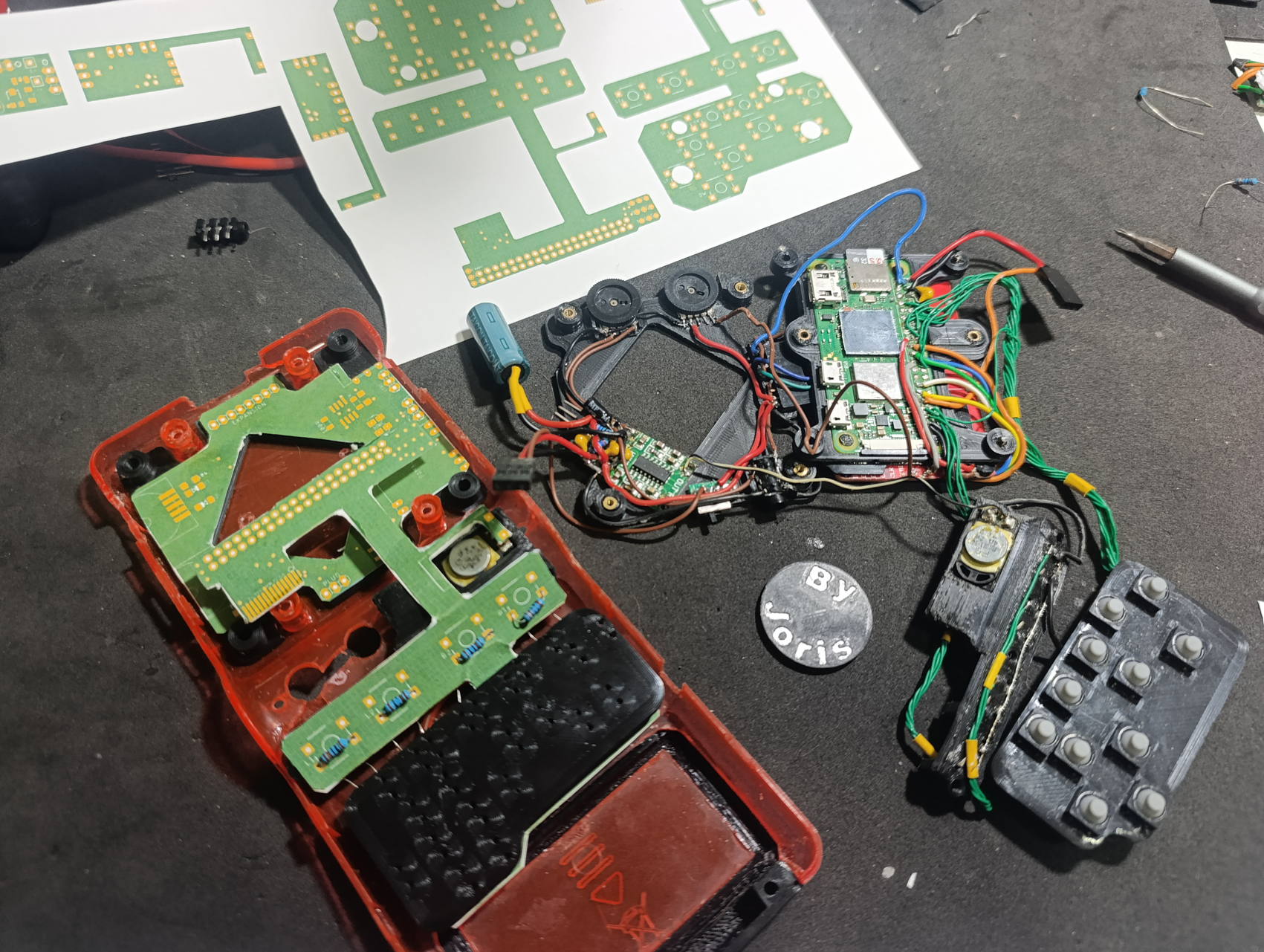 - All parts held in place with 3D-printed supports, M2 brass inserts, and machine screws.