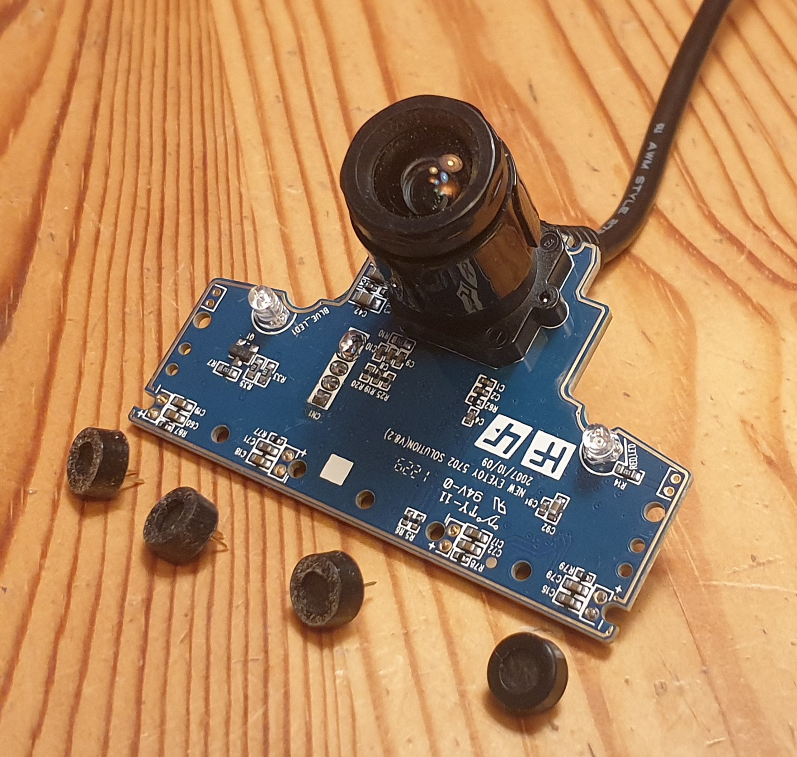 Aiming at a minimal size of the new housing, I removed the microphones from the camera PCBs, because they are not used in my application and they take quite a lot of space.