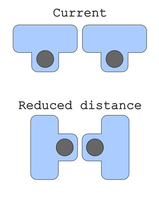 The lower the distance of the camera lenses, the less compensation of the parallax and offset is necessary. If the camera PCBs are rotated as shown in figure 1, the distance can be reduced compared to the current implementation. However, it would be necessary to check how much latency the rotation correction in software creates.