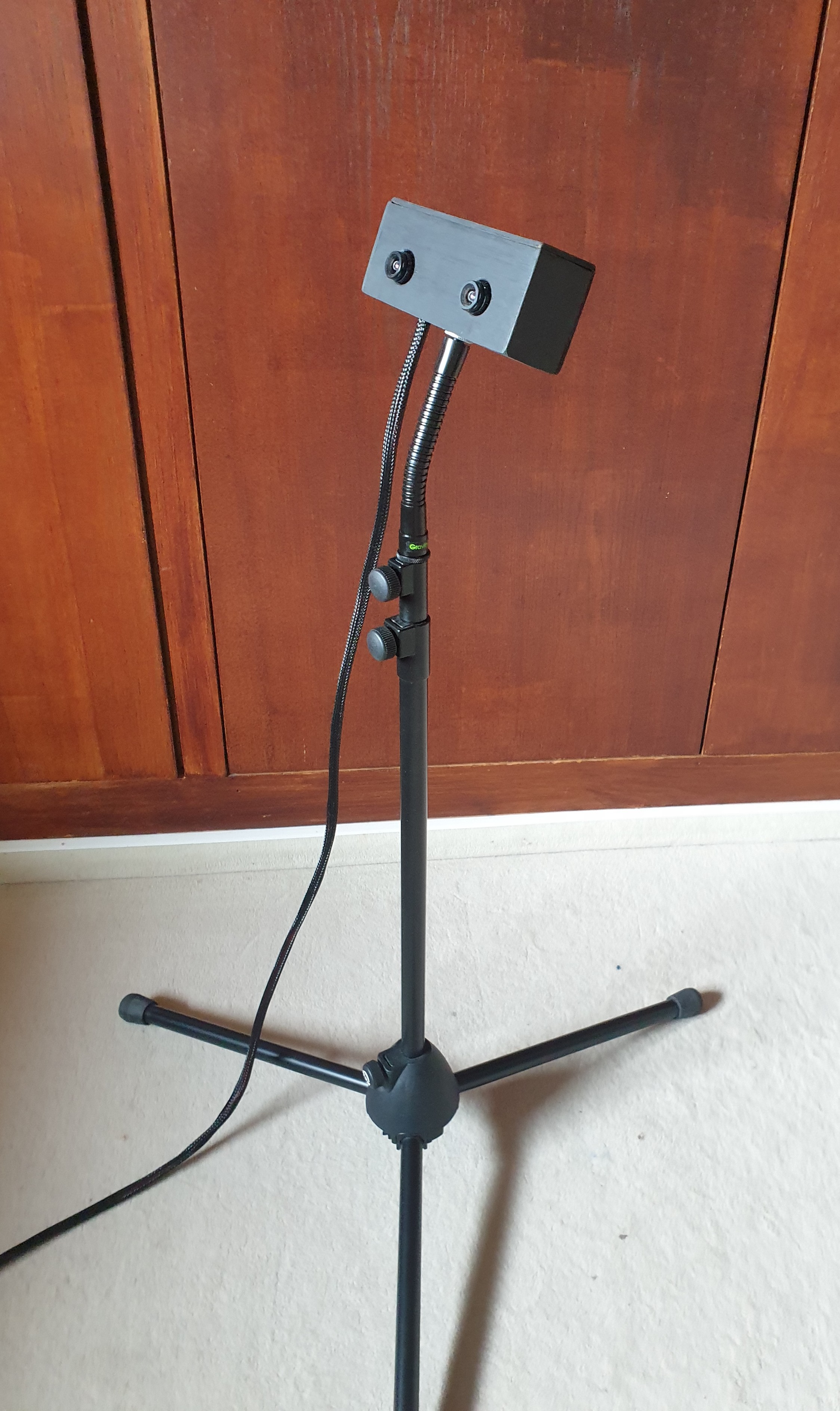 For alignment of the dual camera I use a gooseneck adapter. The outer dimensions of the final enclosure are 14.5cm x 6.5cm x 4cm.