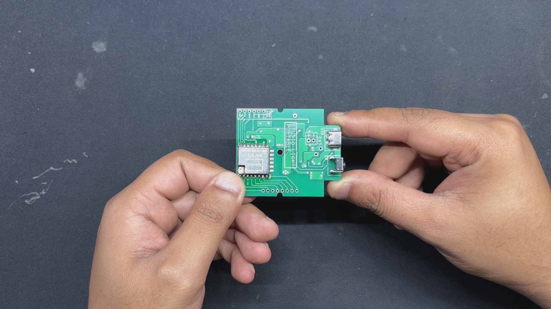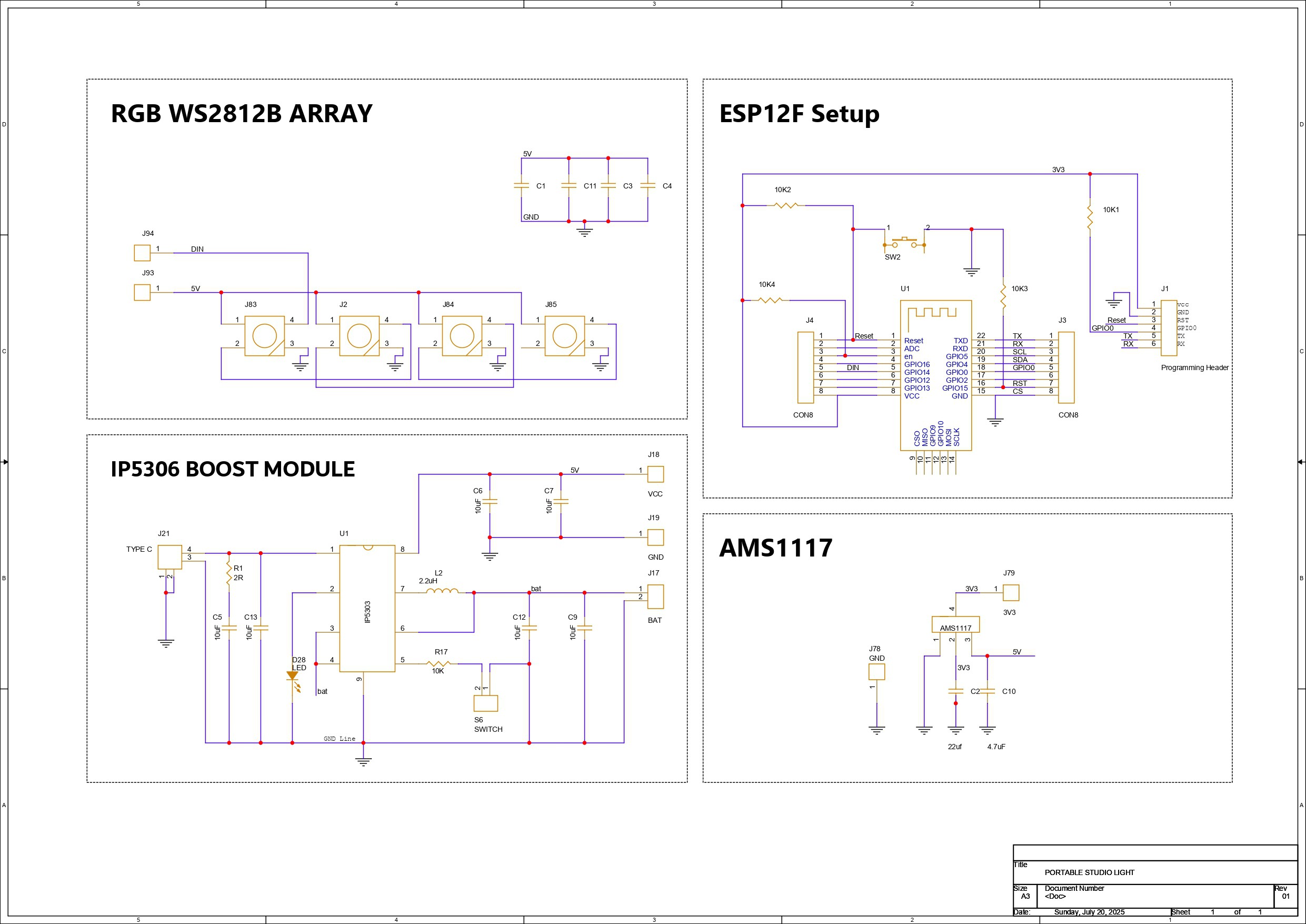 previously, I created a similar Studio light that was far bigger and more powerful in terms of both light and battery capacity. In the initial version, I used two PCBs connected by a 3D printed bracket and a long PCB standoff. The two PCBs consisted of an LED board and a control board. The LED board contains all of the non-addressable SMD RGB 5050 LEDs, including Warm White and Cool White LEDs.