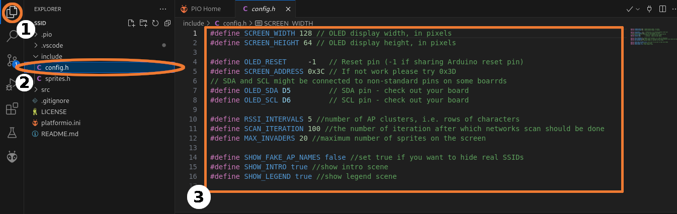 The update_oled() function renders one frame of animation. It draws the signal indicator to the left and the AP names at the upper edge of the display. They are usually shortened due to limited space. The characters move randomly in the center, and sometimes you will notice a laser cannon at the bottom, which points to a free Wi-Fi access point. There is also a "radar" circle animation, just for fun.