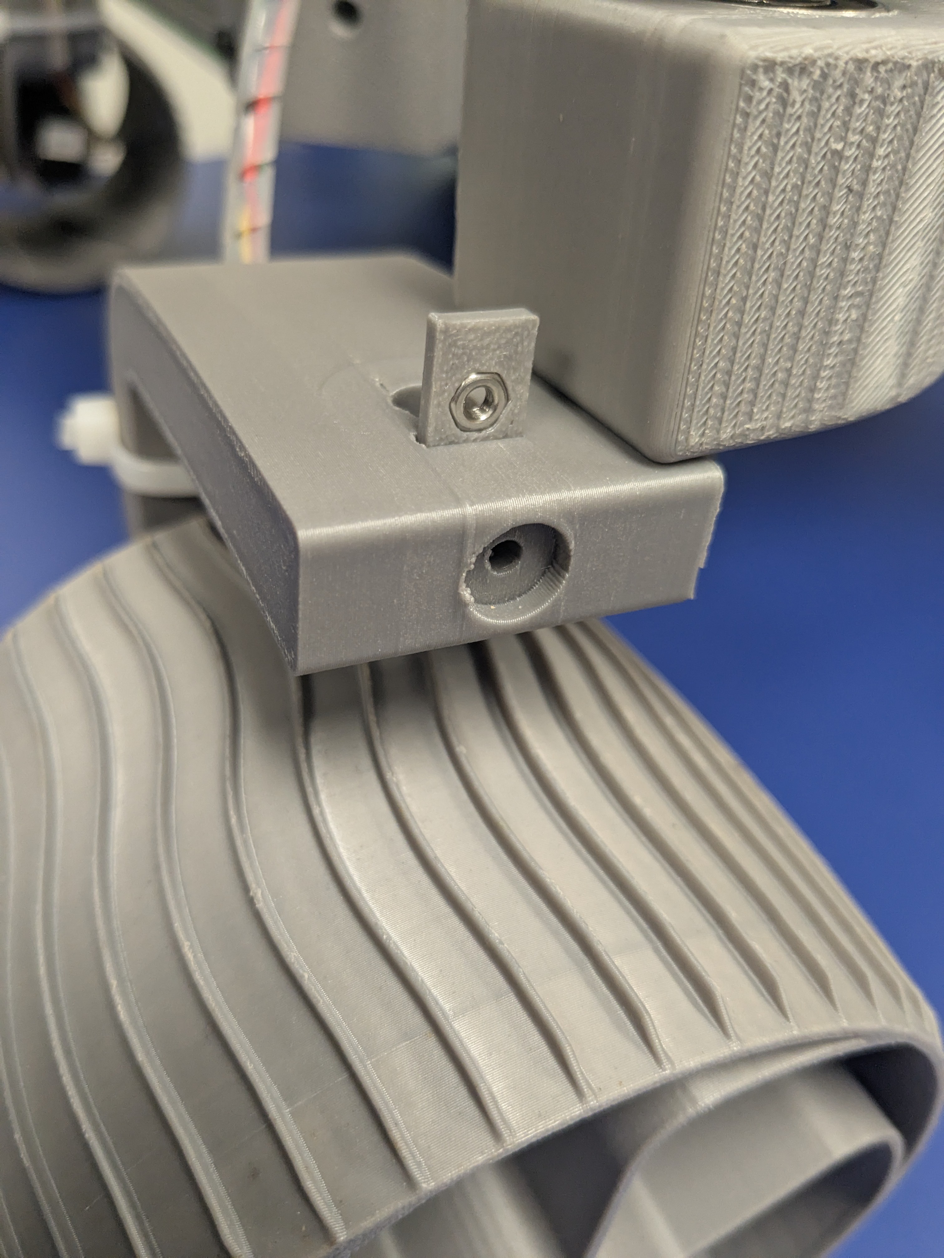 As was mentioned in the Discussion section of CJ - a sawppy variant right here on Hackaday, some of us have had issues with heat-set inserts pulling out. As shown in this CAD and the pictures below, I ended up printing a Nut Carriage to get good strength and print resolution in the XY direction, then printing the knuckle in the standard orientation, so that the M3 nut won't spin when tightened against the flat in the 8mm shaft. Then, I used an M3x16 screw as a setscrew instead of the tiny ones called out in the original. We'll see how this holds up over time!