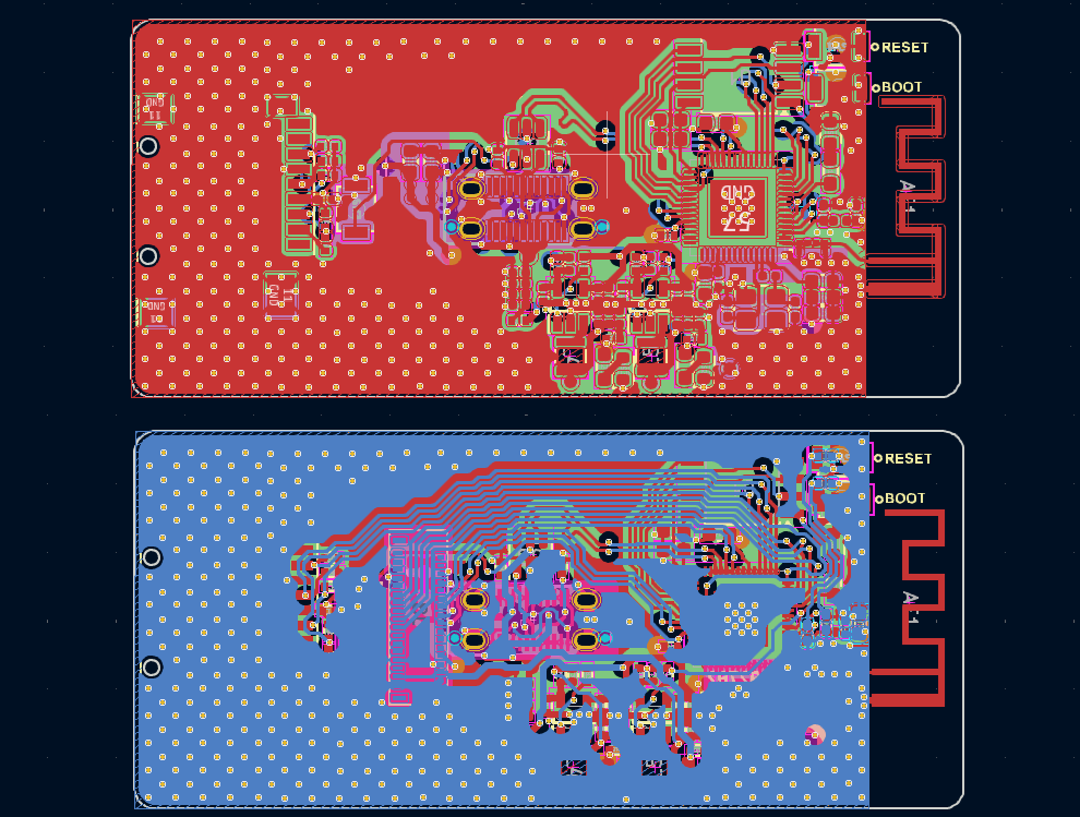 We designed the PCB from scratch using KiCAD. Signal integrity for the SPI bus was a top priority, ensuring stable communication at high speeds with the display and SD card sharing the same bus. The board includes all necessary decoupling capacitors, series resistors, and thermal considerations. The USB-C port is used for both power and serial programming.