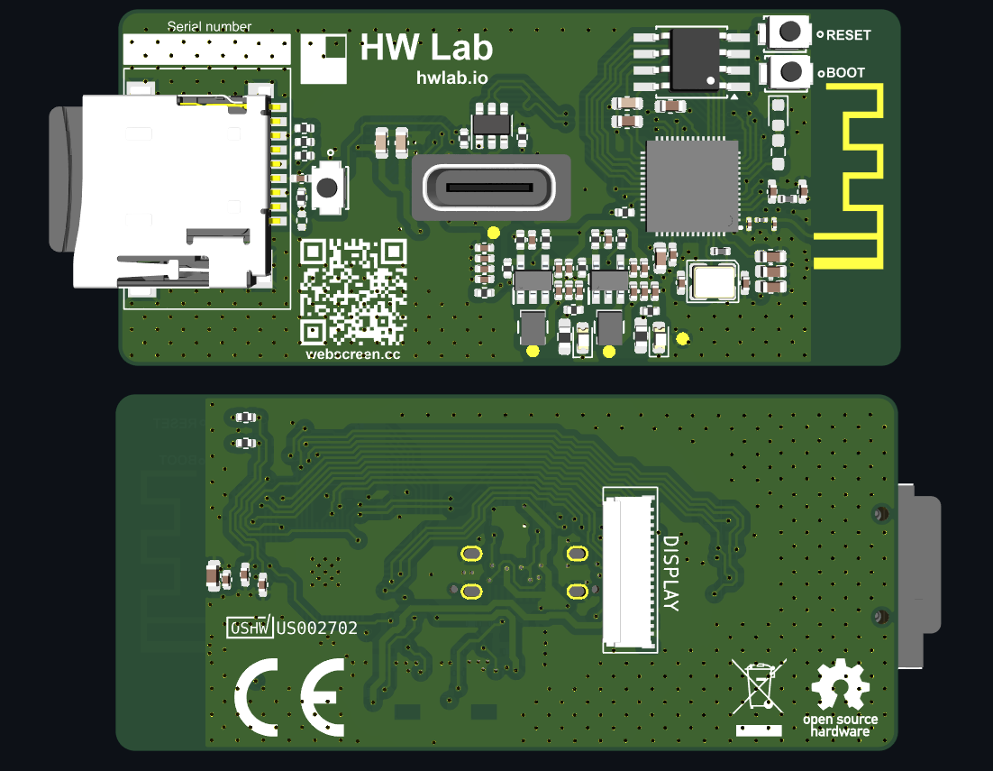 WebScreen is fully open source. All hardware files, firmware, and software are published on GitHub under the MIT license. Contributions are welcome.