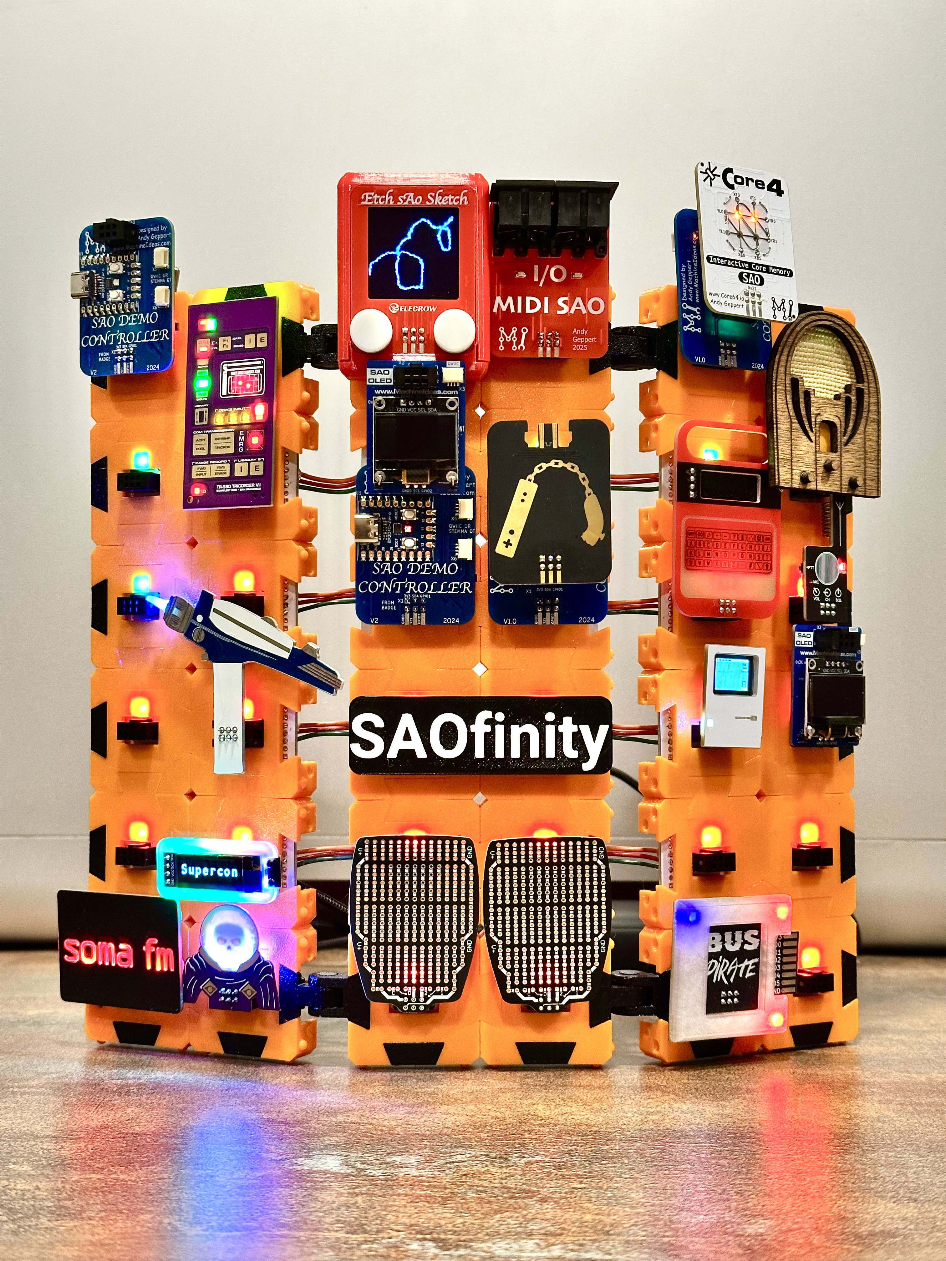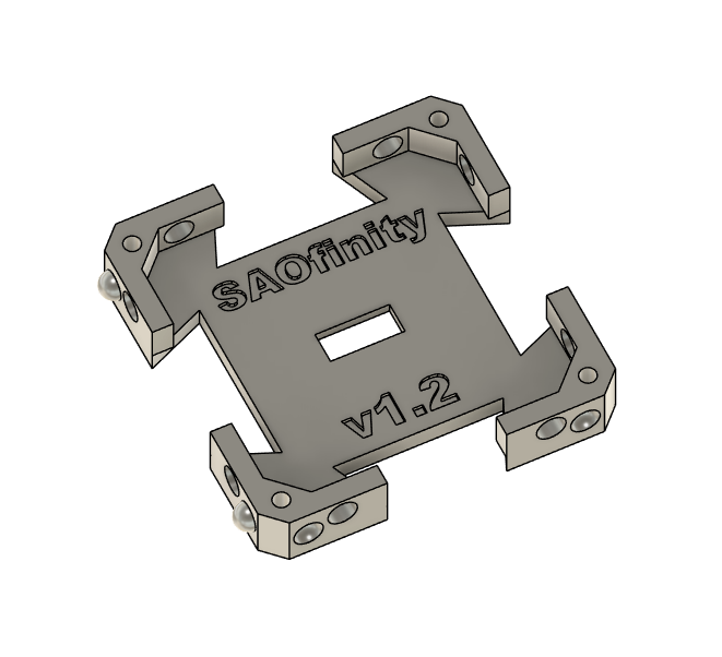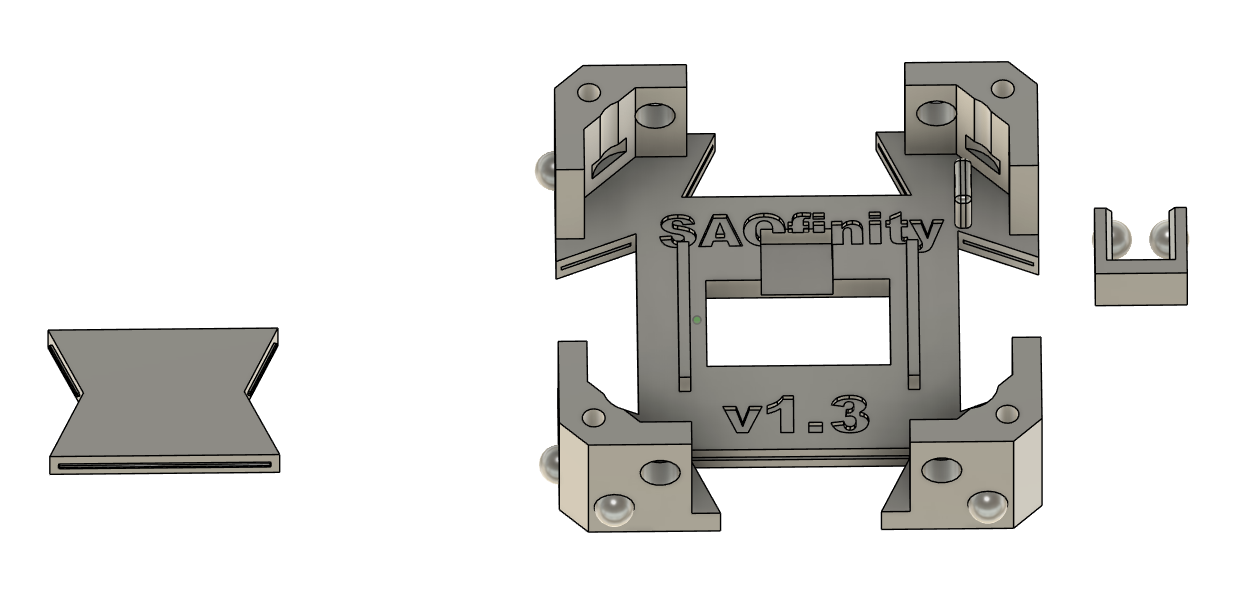 The first prototype was 1.5" x 1.5" and I didn't know what to call it. [@Andy Geppert] pointed out that it was very close (3.9mm) to the Gridfinity organization system size of 42x42mm. I had no good reason not to bump it up to that size and call it SAOfinity. It basically named itself.