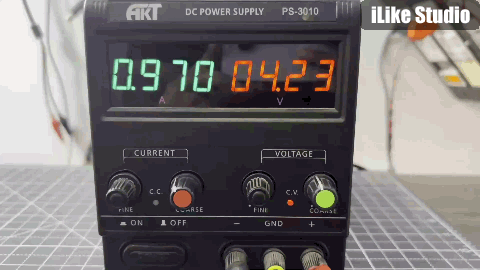 Step 5: Monitor the battery voltage and current, as the battery voltage keeps increasing, lesser current will be drawn. A point came where the battery draws exactly 1A current. This is the point where battery charging shifts from CC to CV mode. And as said earlier, one thing is constant, either voltage or current, so see the GIF, when the power supply is connected to the battery, its voltage drops to 3 volts and the current flows of 980mA.
