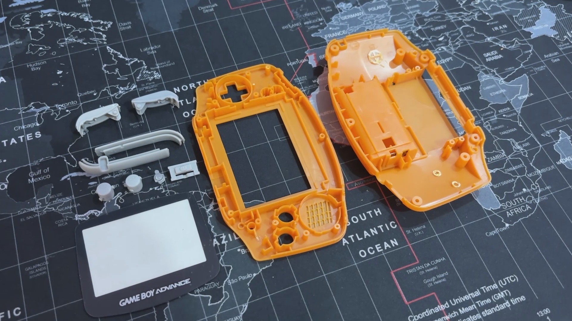 I saw this orange Game Boy advance shell while the seller was selling replacement body kits for handheld devices, and it made me think, "Why not build the entire Game Boy from scratch?" Since the body is brand new, all I had to do was develop the circuitry, which should be really, really simple.
