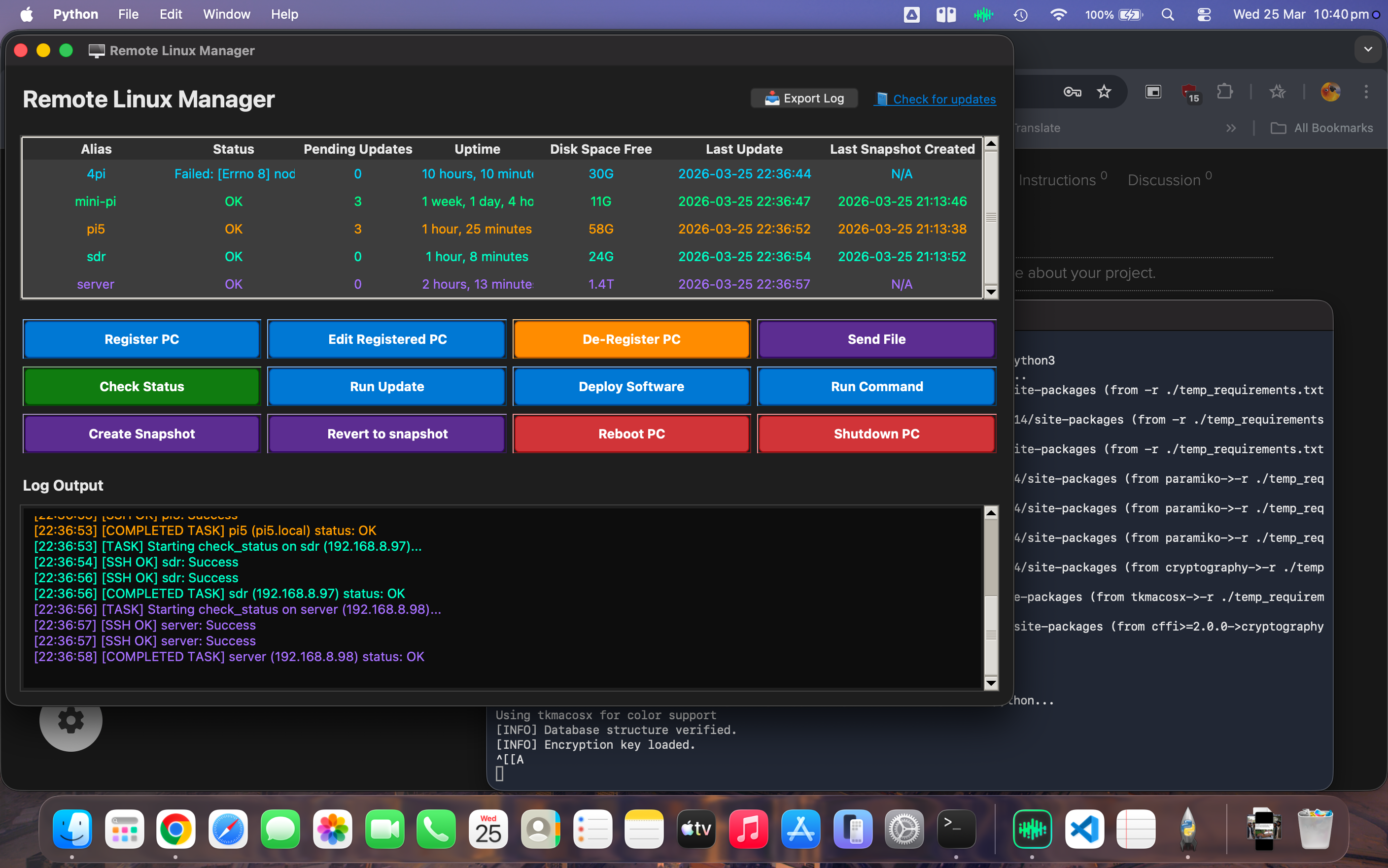 | Remote Access | Paramiko | Handles SSH connections, SFTP uploads, and commands. |