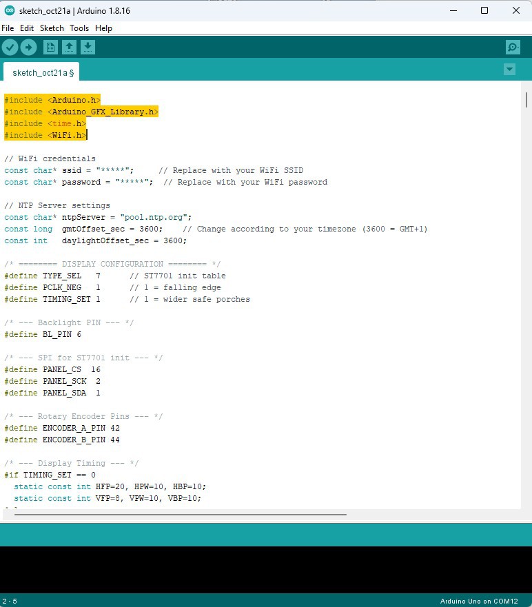 Overall, the code may not be very simple, which is a consequence of the fact that everything is drawn programmatically. However, it is made in a way that you can easily change several parameters to make a custom clock face. It is also seen that the code uses a minimum number of basic libraries. I plan to create code in the next projects with this display using the new libraries and tools developed specifically for projects with LCD displays, because the development is much easier and the final effect is fascinating.