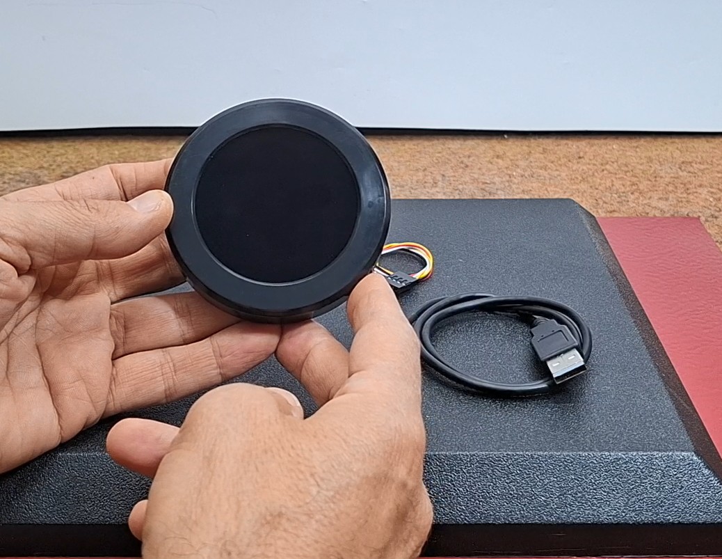 Today I received a shipment with a large round LCD display from Elecrow. The device is packed in two boxes so that it is fully protected from damage during transportation. Inside there is a display, a USB cable for power and communication, as well as an additional cable for connecting an external module.