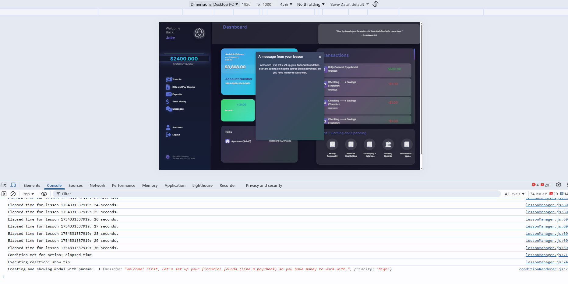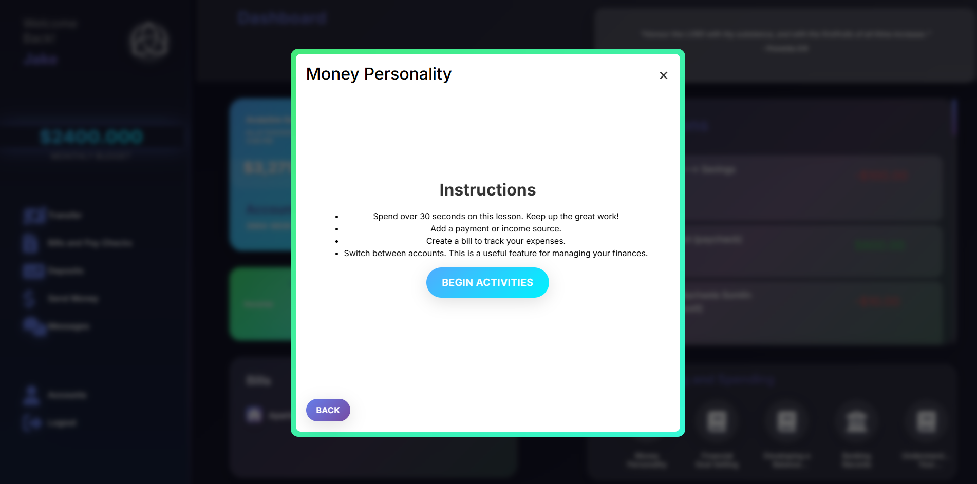 At its core, Trinity Capital empowers educators to bring financial education to life. Teachers can build or customize lessons using a JSON-based template system, track student progress through analytics dashboards, and even simulate long-term financial consequences with “time travel” scenarios.