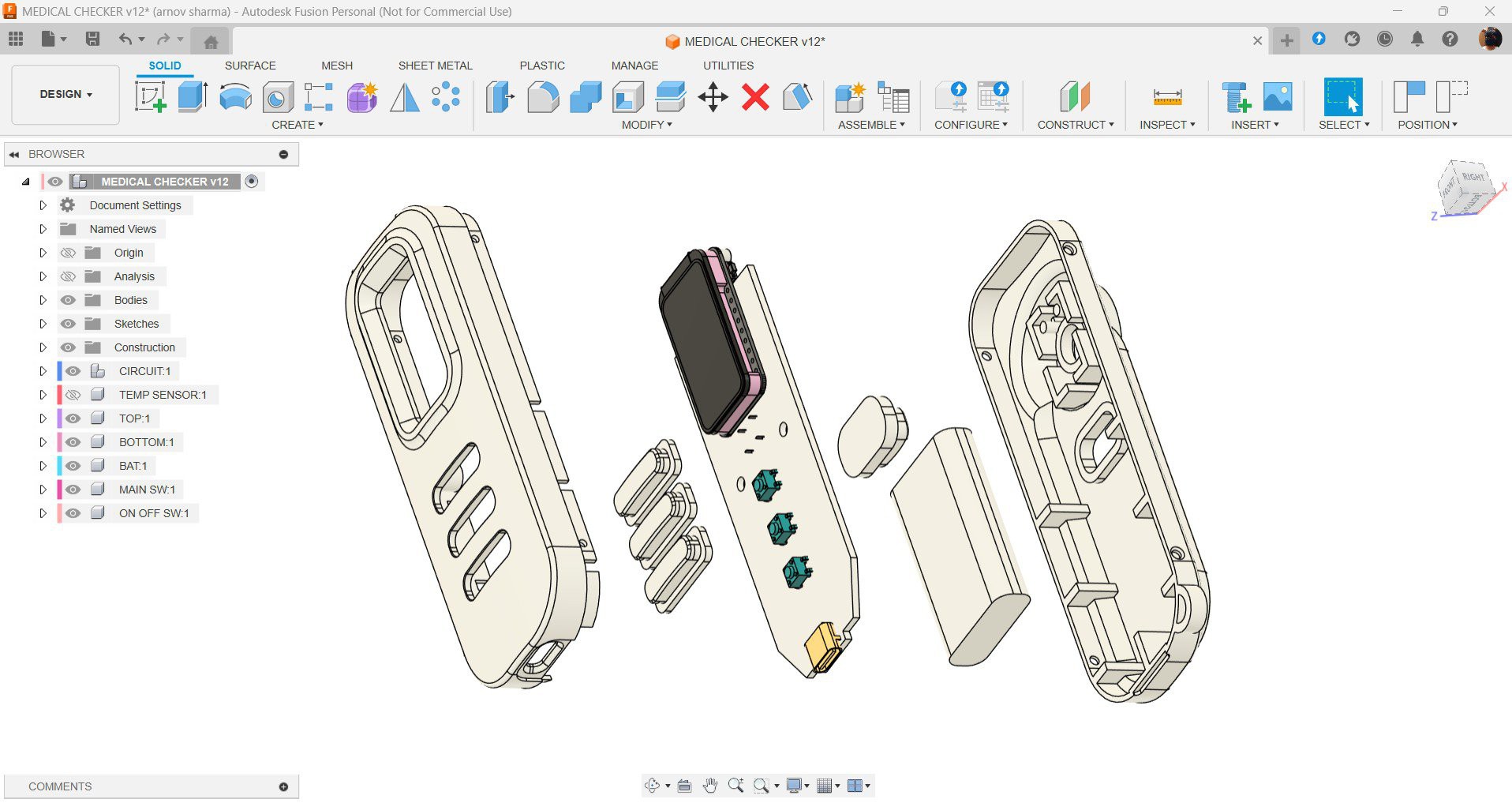 At its core, Medic Mini runs on an ESP32-C6 paired with a 1.47" Waveshare display, housed inside a custom PCB and a 3D-printed enclosure I designed from scratch. The interface is clean and purposeful: users are prompted with one symptom at a time and respond using three tactile buttons—Yes, No, or Not Sure.
