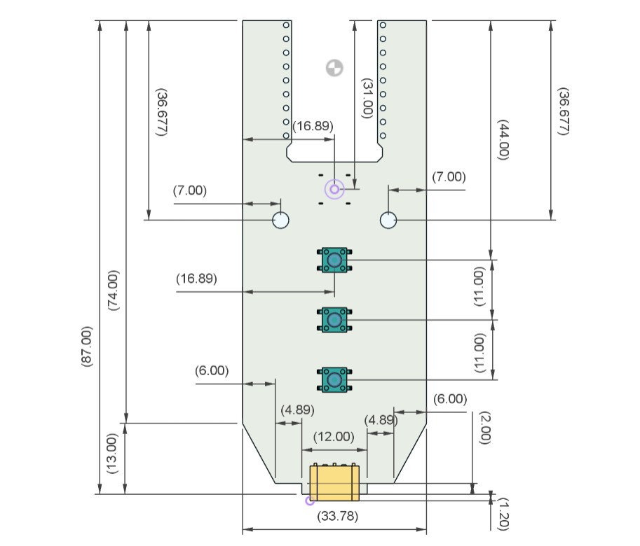 Using the dimensions from the CAD model, we prepared the PCB outline and then placed the buttons in their mounting positions as specified in the design. We did the same for the Waveshare ESP32 board, the Type-C port, and the mounting holes. The rest of the components were placed wherever we found adequate space, and then we connected the tracks and finalized the board.
