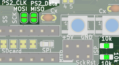 MHF-001 proved, that VGA signal can be generated clean and stable. Due bad PORTs assignment was characters little distorted, this should be fixed on this new card. Also I failed to solder the external RAM perfectly, due footprints oriented for machine work, not hand soldering, so it sometime worked, sometime not and preesig it by hand improved the chace for right results. New version have much longer pads on footprints, which I can solder reliably.
