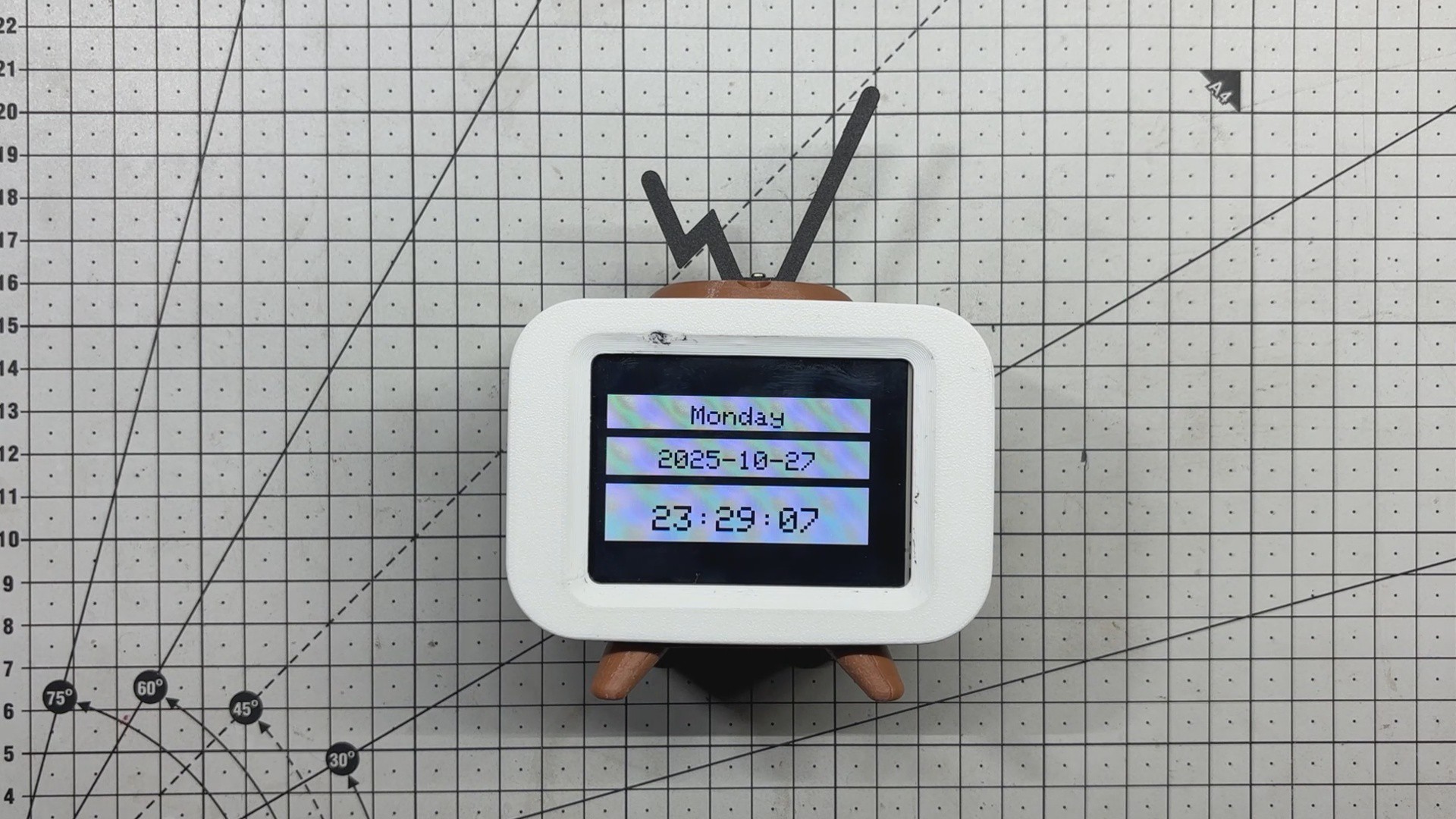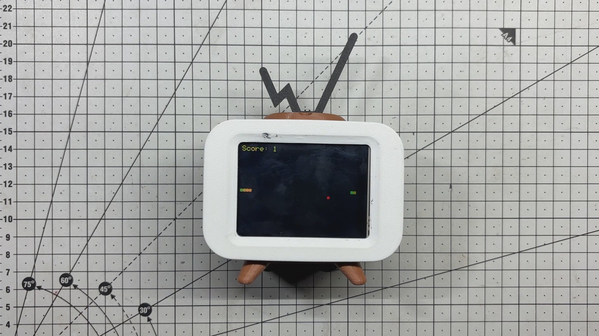 To bring the whole build to life, I designed an enclosure inspired by vintage 1980s television sets. The ILI9341 acts as the screen, framed by a retro shell complete with a dummy antenna and a 10-degree inclined base, a nod to old-school CRTs.